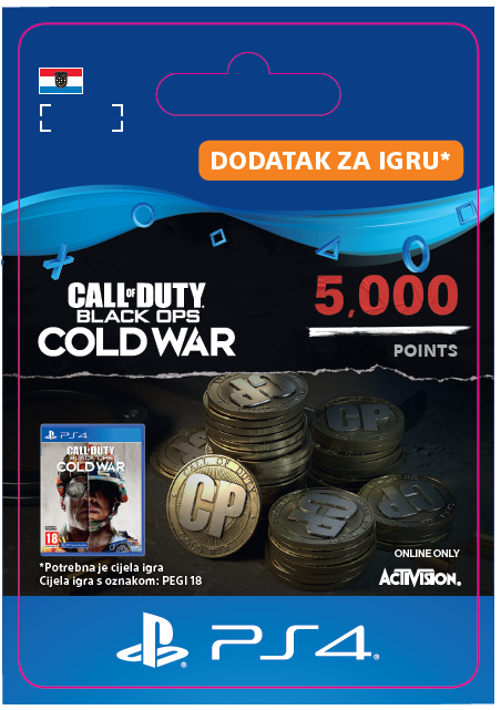 5,000 CALL OF DUTY® POINTSFull game requiredThis bundle includes 4,000 + 1,000 Bonus Call of Duty®Points. Call of Duty® Points (CP) are the in-game currency that can be used in Black Ops Cold War to obtain new in-game content for use in Multiplayer and Zombies game modes.Call of Duty®: Black Ops Cold War game required, sold separately.CP purchased…