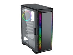 Priestranná skriňa formátu Middle Tower s preskleným odklopným bočným krytom a RGB podsvieteným panelom.