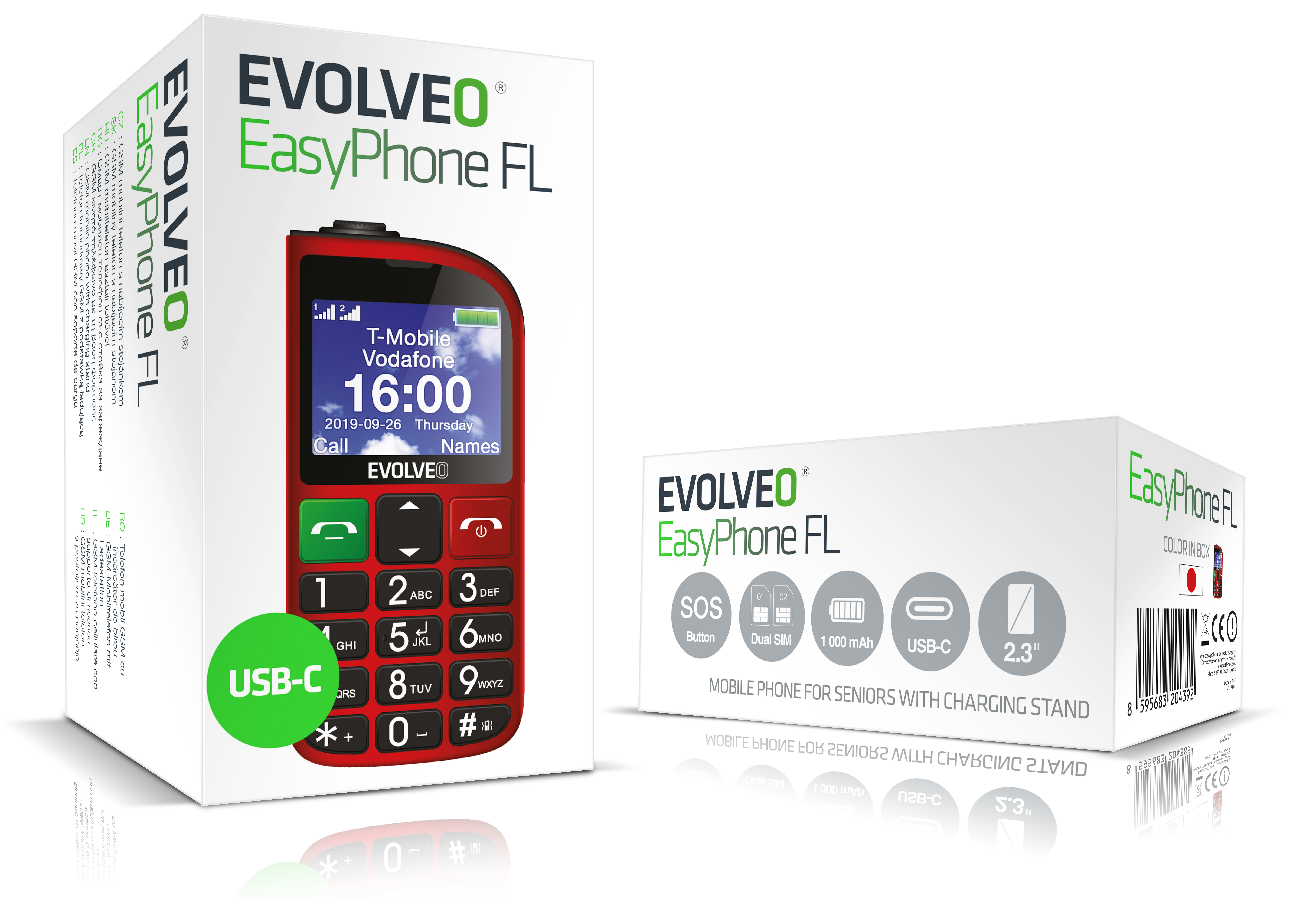 EVOLVEO EasyPhone FL, mobilní telefon pro seniory s nabíjecím