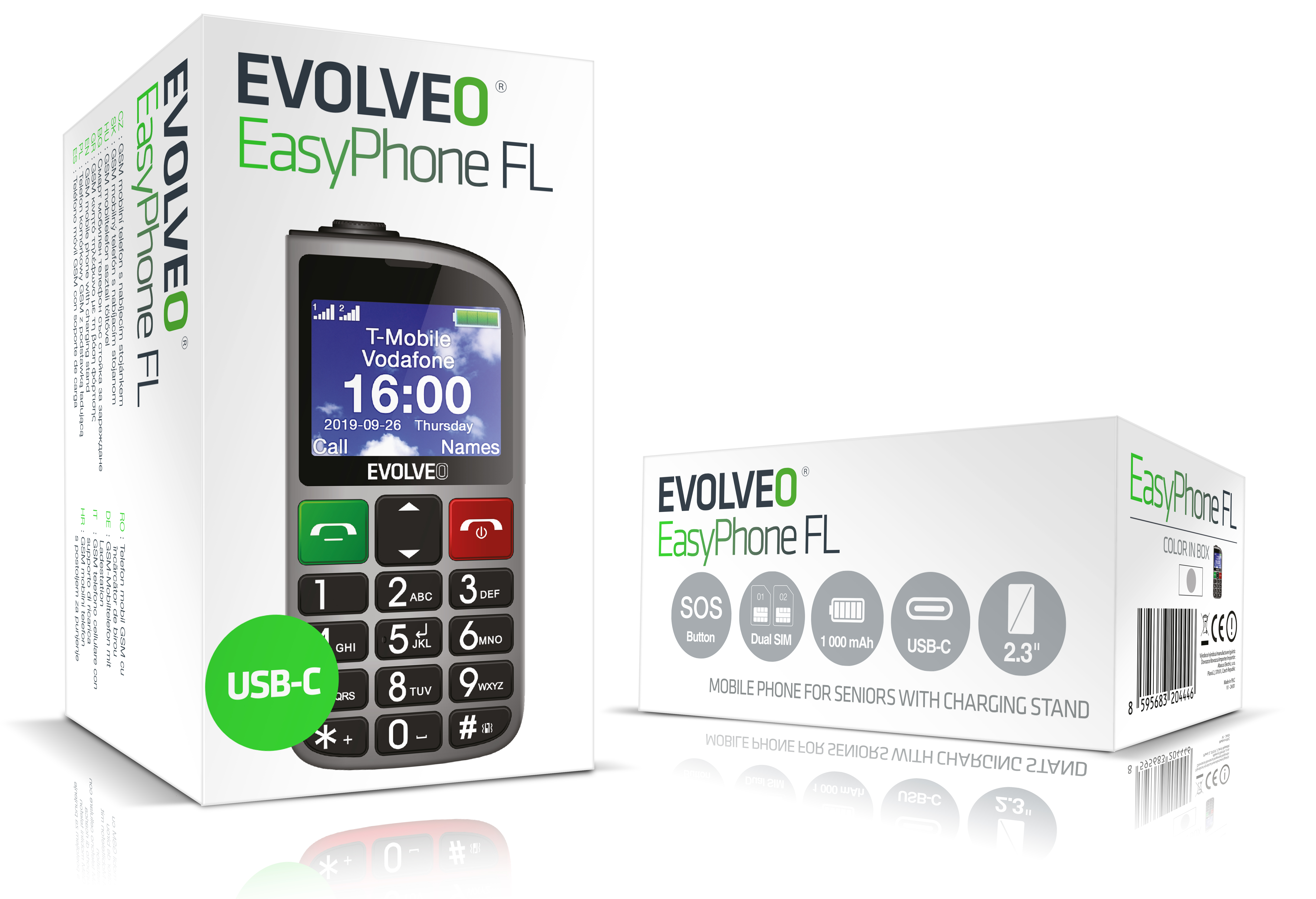 EVOLVEO EasyPhone FL, mobilní telefon pro seniory s nabíjecím