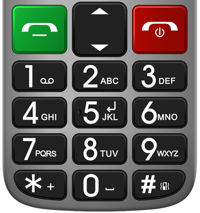 • Mobilní telefon s velkými tlačítky vhodný pro seniory nebo pro