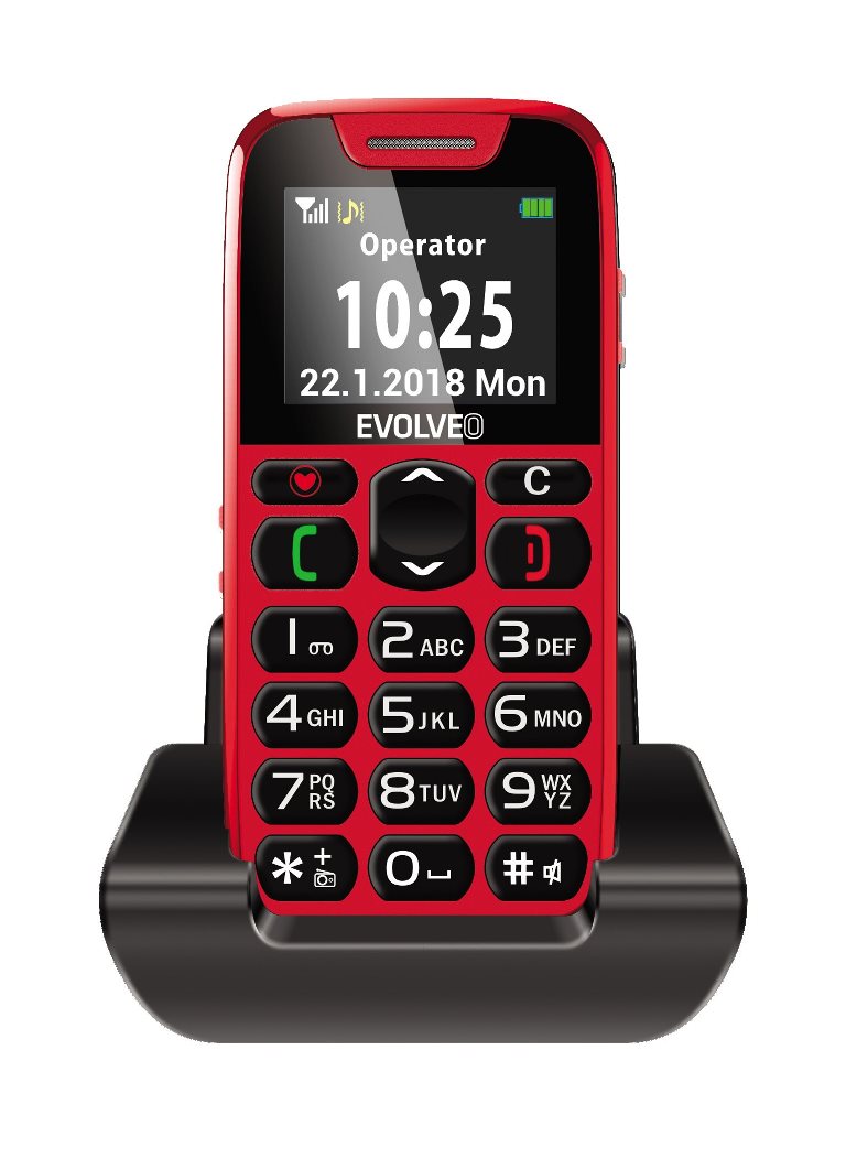 EVOLVEO EasyPhone, mobilní telefon pro seniory s nabíjecím stojánkem (červená barva)