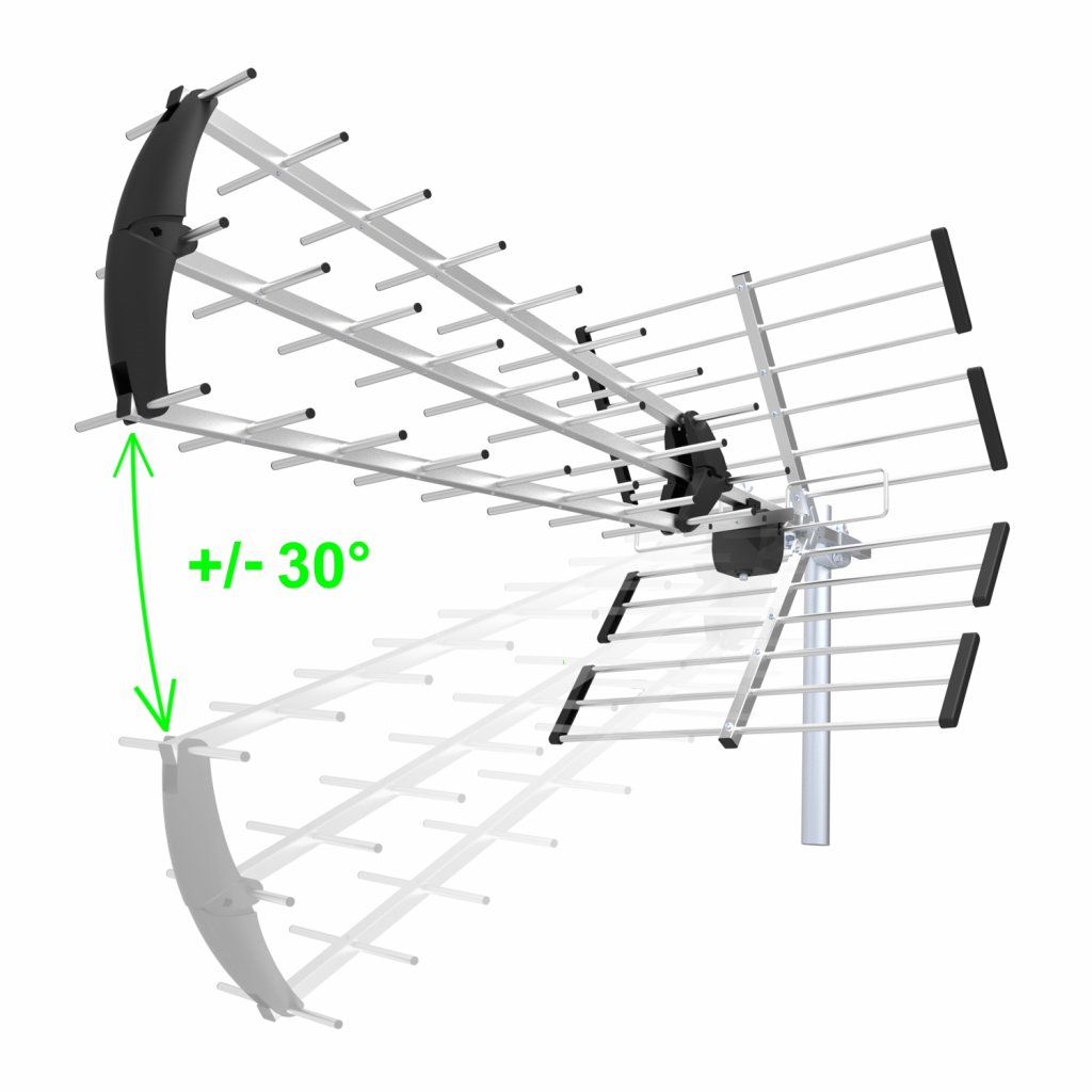 nastavení polohy +/- 30° zvyšuje zisk antény ve srovnání s