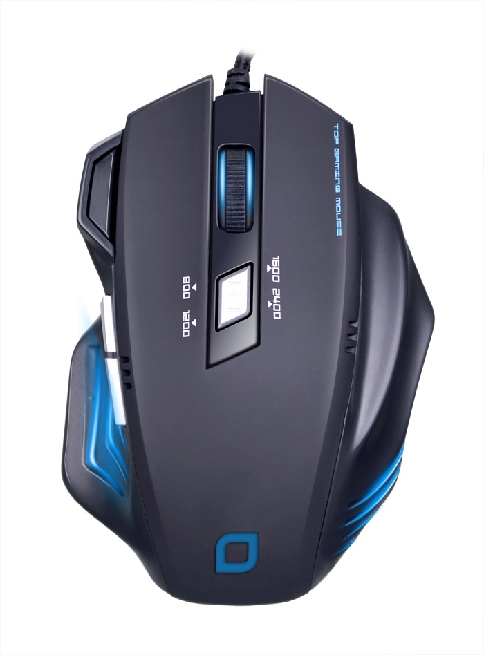 Herní myš, vhodná i na běžnou práci, s propracovanou ergonomií a přepínatelným rozlišením až 2400DPI.