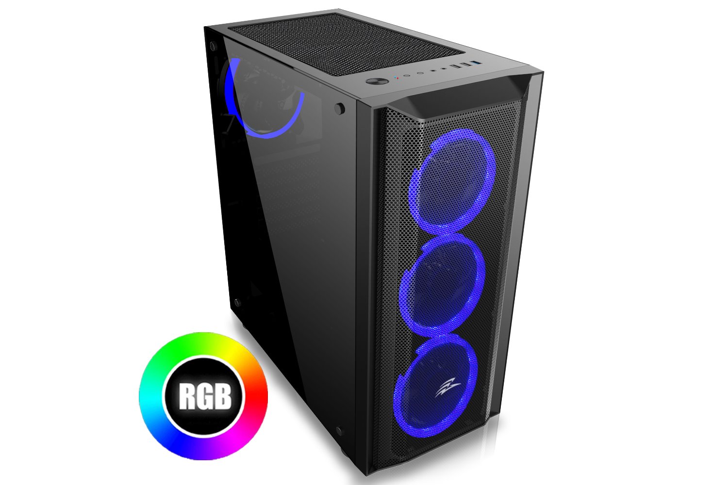 Herní ATX midi tower s instalovanými 4x RGB rainbow 120 mm