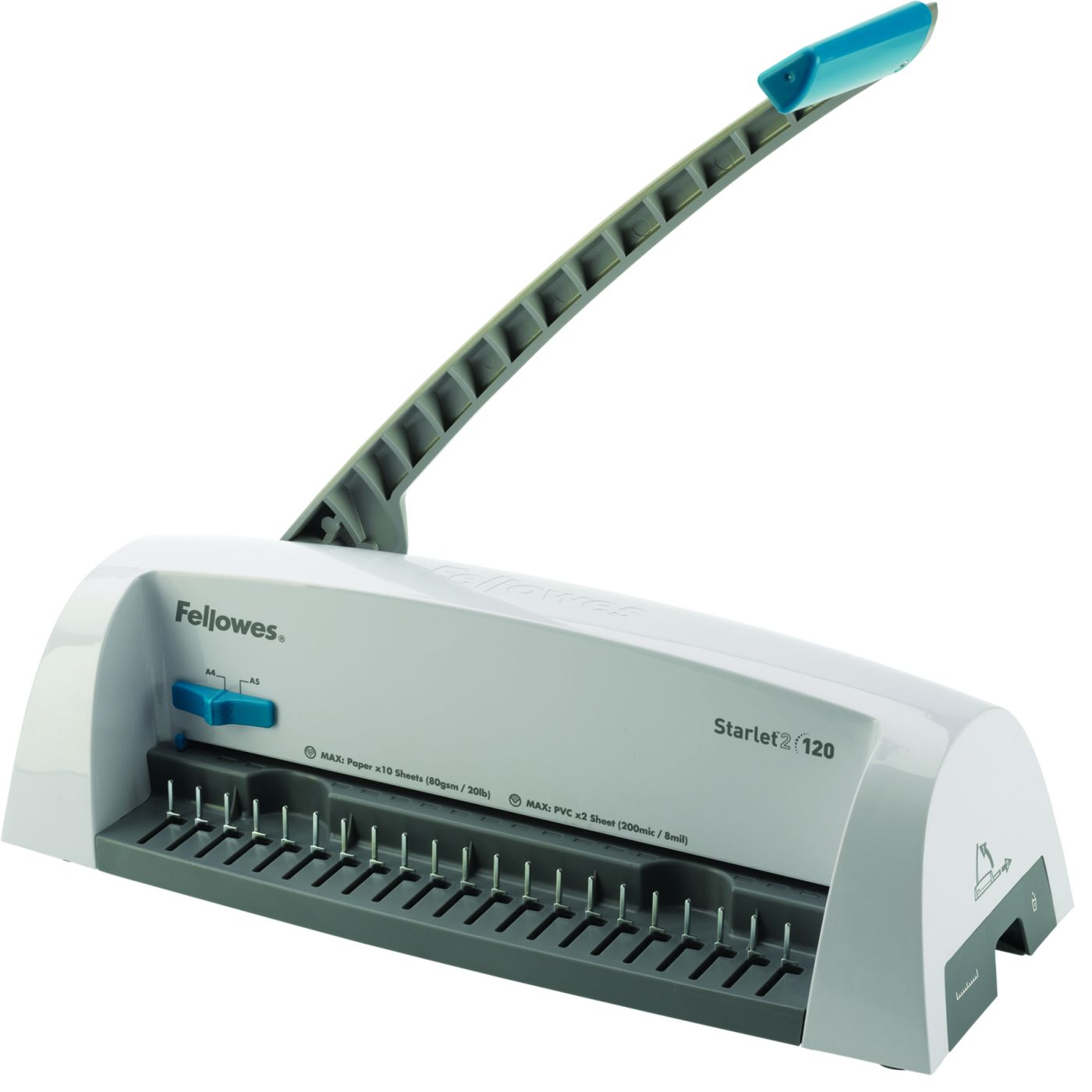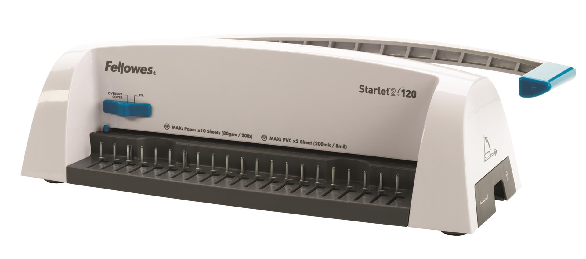 Základní model nové designové řady vázacích strojů Fellowes pro příležitostnou vazbu. Děrovací kapacita až 12 listů 80 g papíru. Kapacita vazby až 120 listů (do průměru hřbetu 16 mm). Vazač má dvě přednastavené pozice – pro děrování formátu A4 a A5.