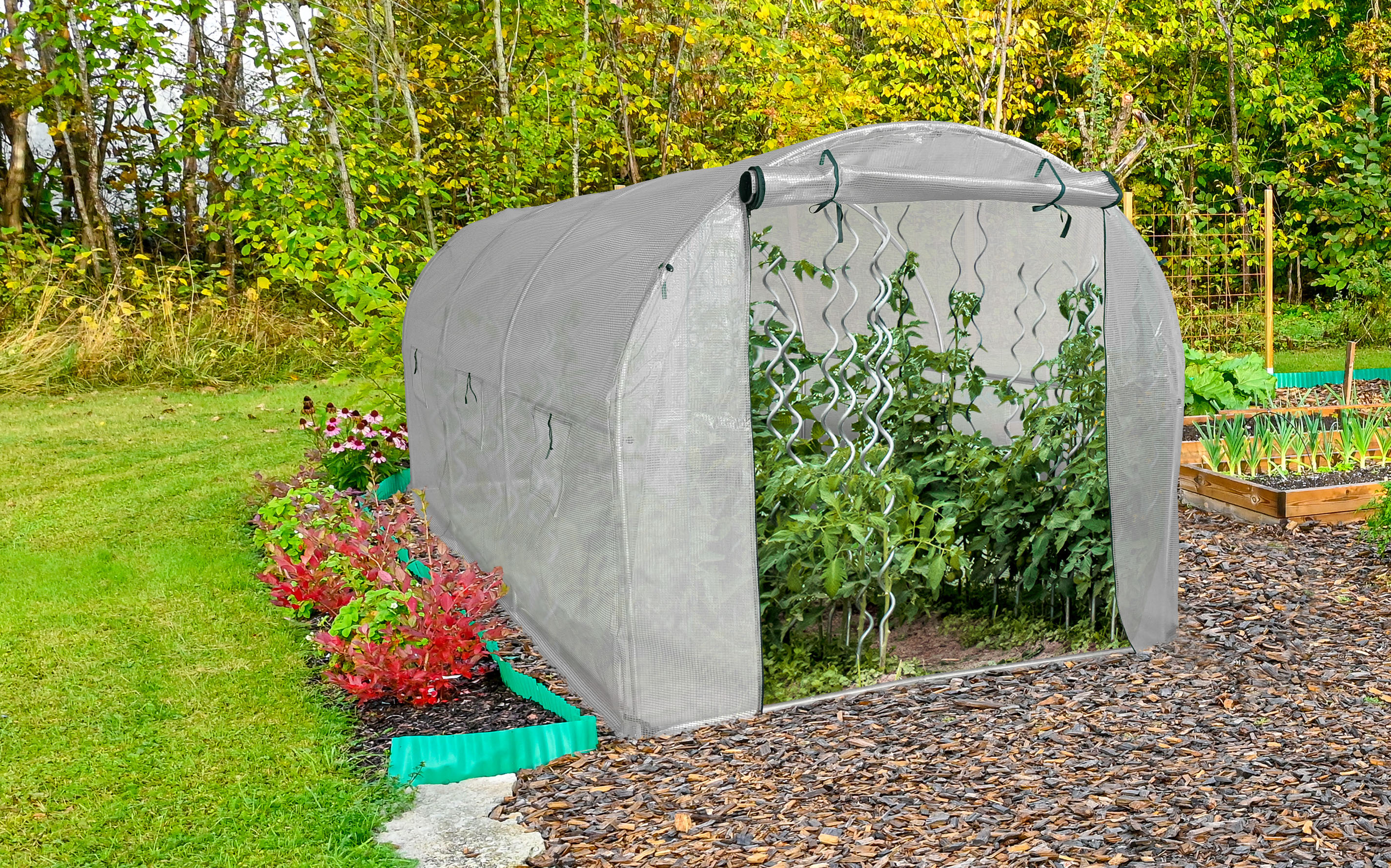 V balení naleznete kotvicí kolíky i lana, kterými fóliovník ukotvíte k zemi. Snížíte tak riziko, že vám takzvaně „uletí”. V případě potřeby můžete ovšem díky snadné montáži i demontáži fóliovník přesunout na jiné místo na pozemku.