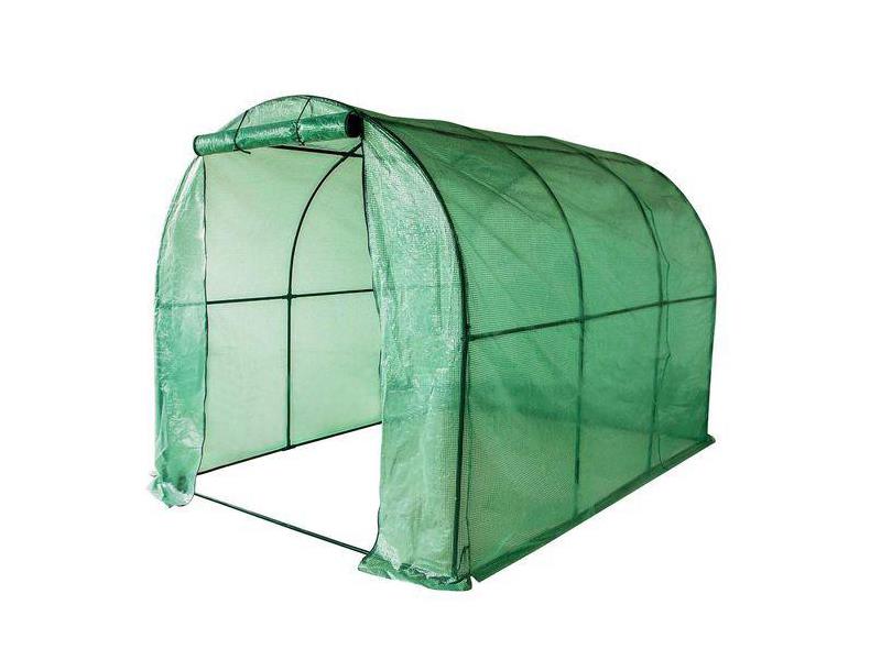 Fóliovník Rozměr fóliovníku: 3000x1500x1750mm Policový fóliovník s kovovou konstrukcí, průměr trubky 16 mm, spojky z PP materiálu. Krycí vrchní plachta je z PE materiálu (135g/m2). Fóliovník nemá boční okna. Zipem uzavíratelný vstupní otvor. Zajišťuje ideální klimatické podmínky pro rychlý růst a zvýšení výnosu sklizně.
