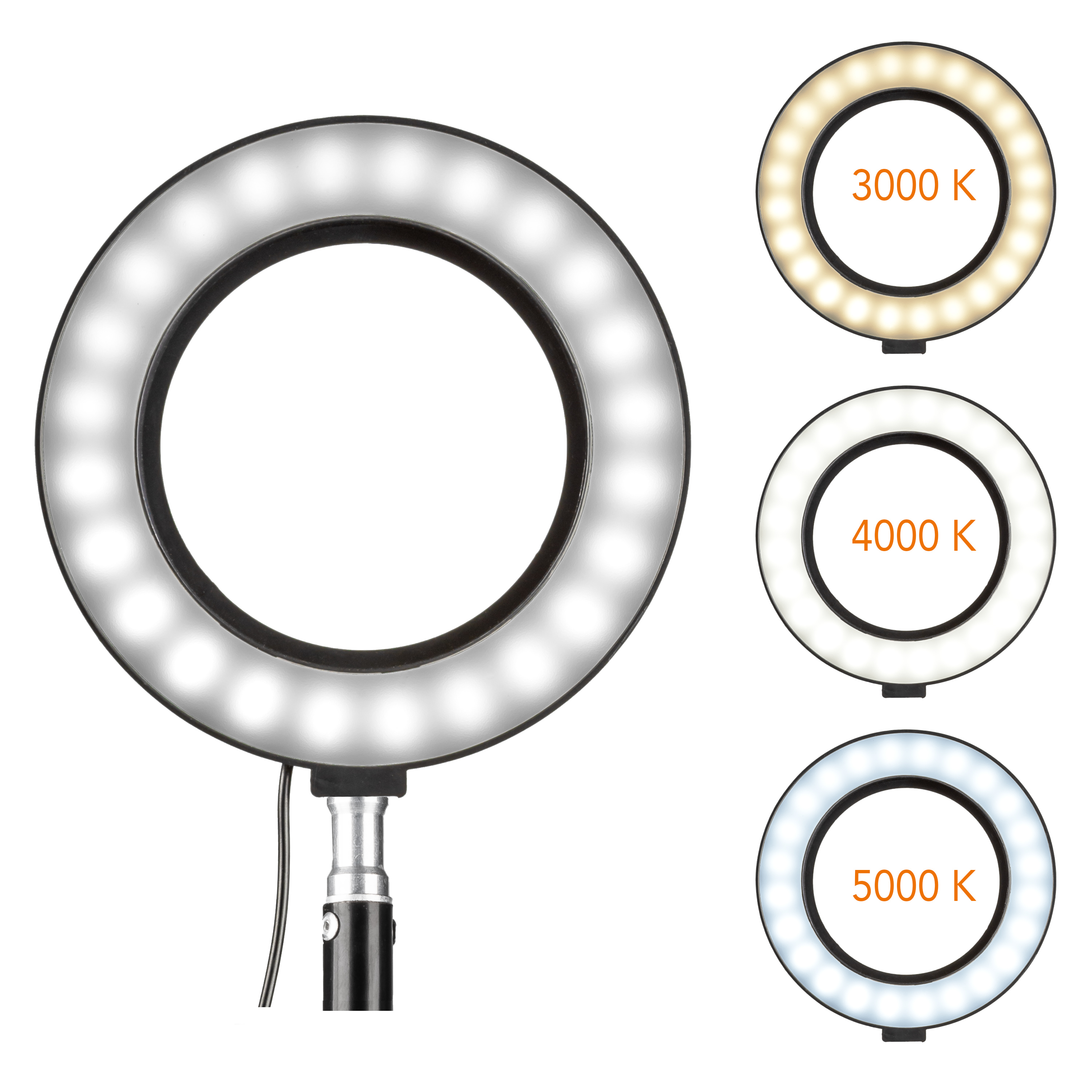 Dodávané 6wattové prstencové světlo obsahuje celkem 48 LED diod – 24 kusů pro teplé bílé světlo a 24 kusů pro studené bílé světlo. Barevná teplota lze nastavit ve 3 stupních mezi 3 000 K (umělé světlo) a 5 000 K (denní světlo) a jas lze ztlumit v 10 úrovních. Napájení osvětlení je zajištěné přes USB rozhraní, kdy je lampa upevněna přes 1/4″ šroubový závit na kulové hlavě. Světlo z kruhové lampy pak produkuje přirozené prstencové odlesky, což je žádaná vlastnost při barevném kódování.