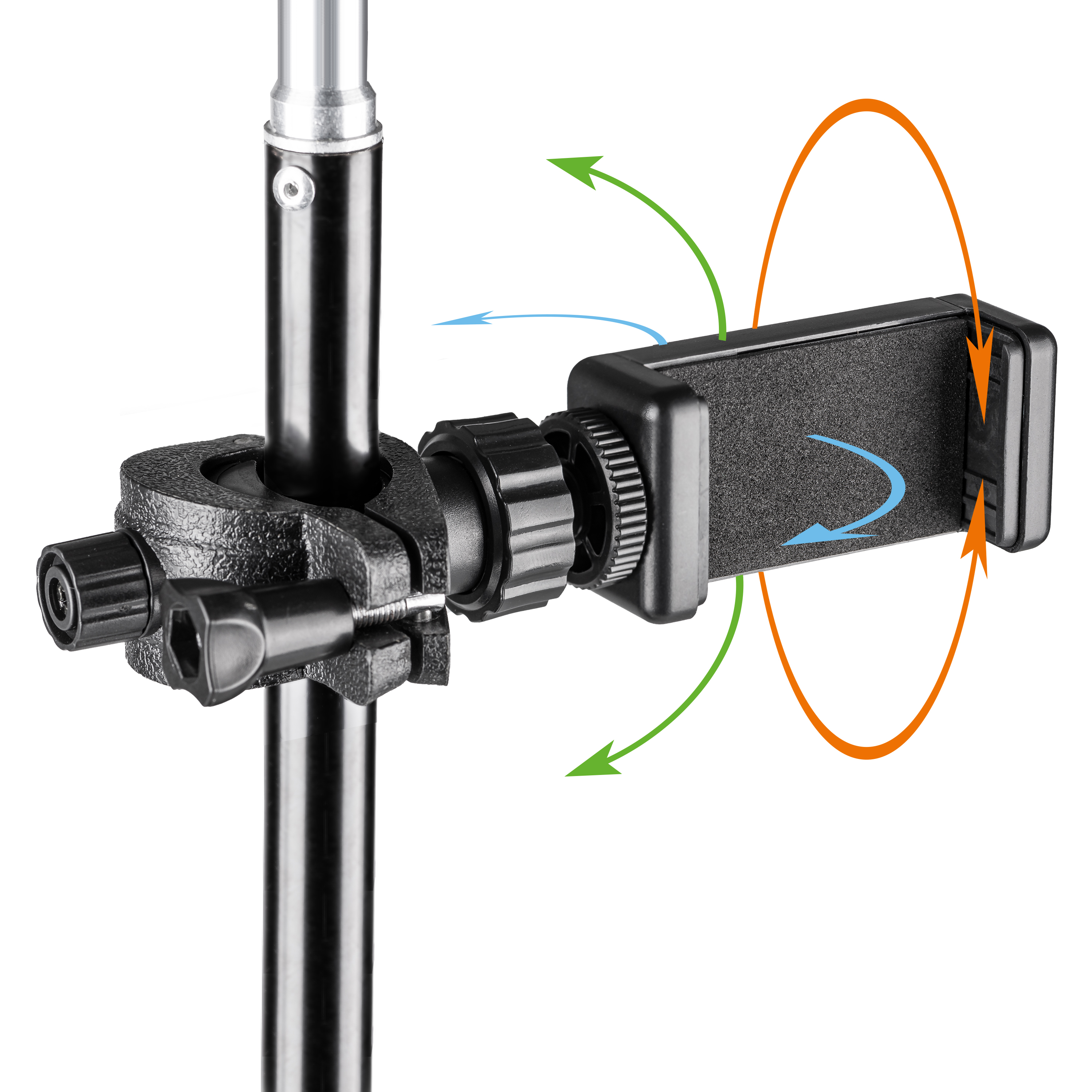 - Upínací držák usnadní fotografování, natáčení i streamování, kdy drží smartphony v horizontální i vertikální poloze