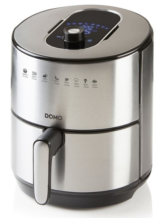 Digitální horkovzdušná fritéza DO 530 FR značky Domo vás na první pohled zaujme svým nerezovým provedením a objemem fritovacího koše 4 l, který pojme až 1,2 kg surovin. Fritéza zvládne smažení bez oleje horkým vzduchem, grilování, ohřívání hotových pokrmů i rozmrazování. Na přehledném velkém LCD displeji si snadno nastavíte čas a teplotu, nebo si zvolíte jeden z 8 přednastavených programů. Celou dobu máte nad průběhem nastaveného programu plnou kontrolu a můžete kdykoliv probíhající program pozastavit, nebo upravit teplotu i čas.
