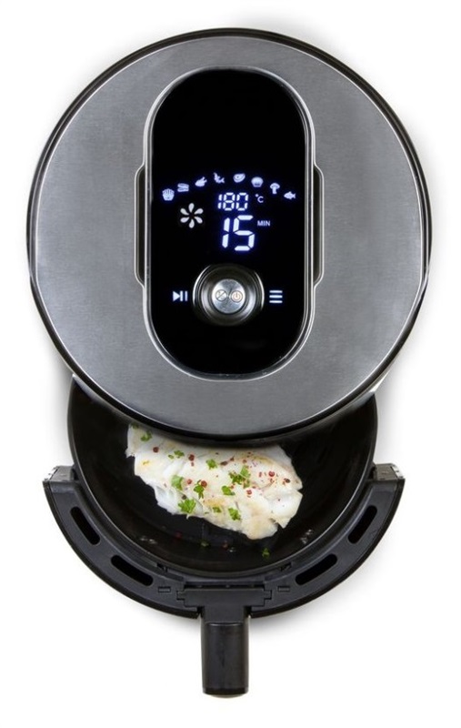 Horkovzdušná fritéza využívá k fritování efektivní cirkulaci vzduchu a výkonné topné těleso. Nahřátí vnitřního prostoru na potřebnou teplotu tak nezabere fritéze více než 3 minuty. Fritovací nádobu můžete kdykoliv bezpečně z fritézy vyjmout za robustní pevnou rukojeť. Přebytečný tuk se pak hromadí pod perforovaným fritovacím talířem na dně fritovací nádoby. Fritovací talíř můžete snadno vyjmout a celou fritovací nádoby i talíř umýt.
