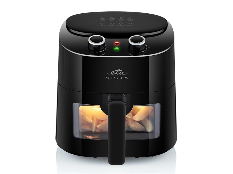 Připravte si oblíbená smažená i nesmažená jídla s ve zdravější verzi, s minimem přidaného tuku! Horkovzdušná fritéza ETA Vista smaží jídlo pomocí horkého vzduchu, který proudí rovnoměrně uvnitř fritézy. Výsledkem jsou pak rovnoměrně usmažené řízky, hranolky, krokety i zeleninový falafel.