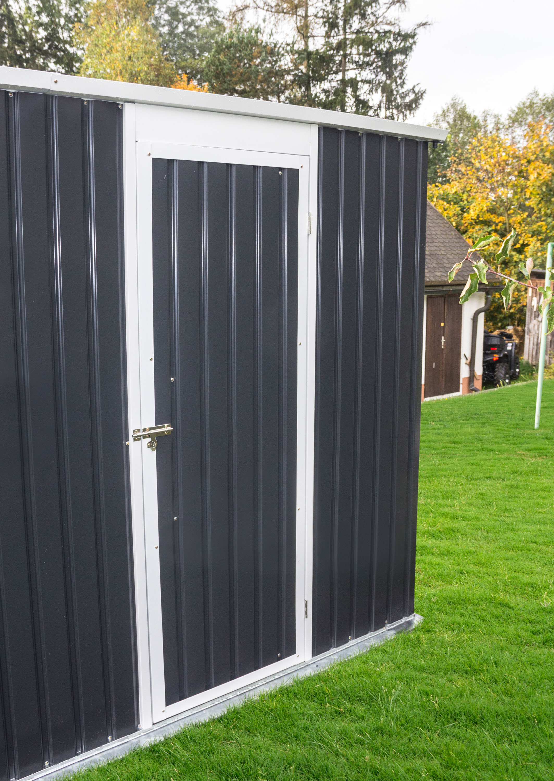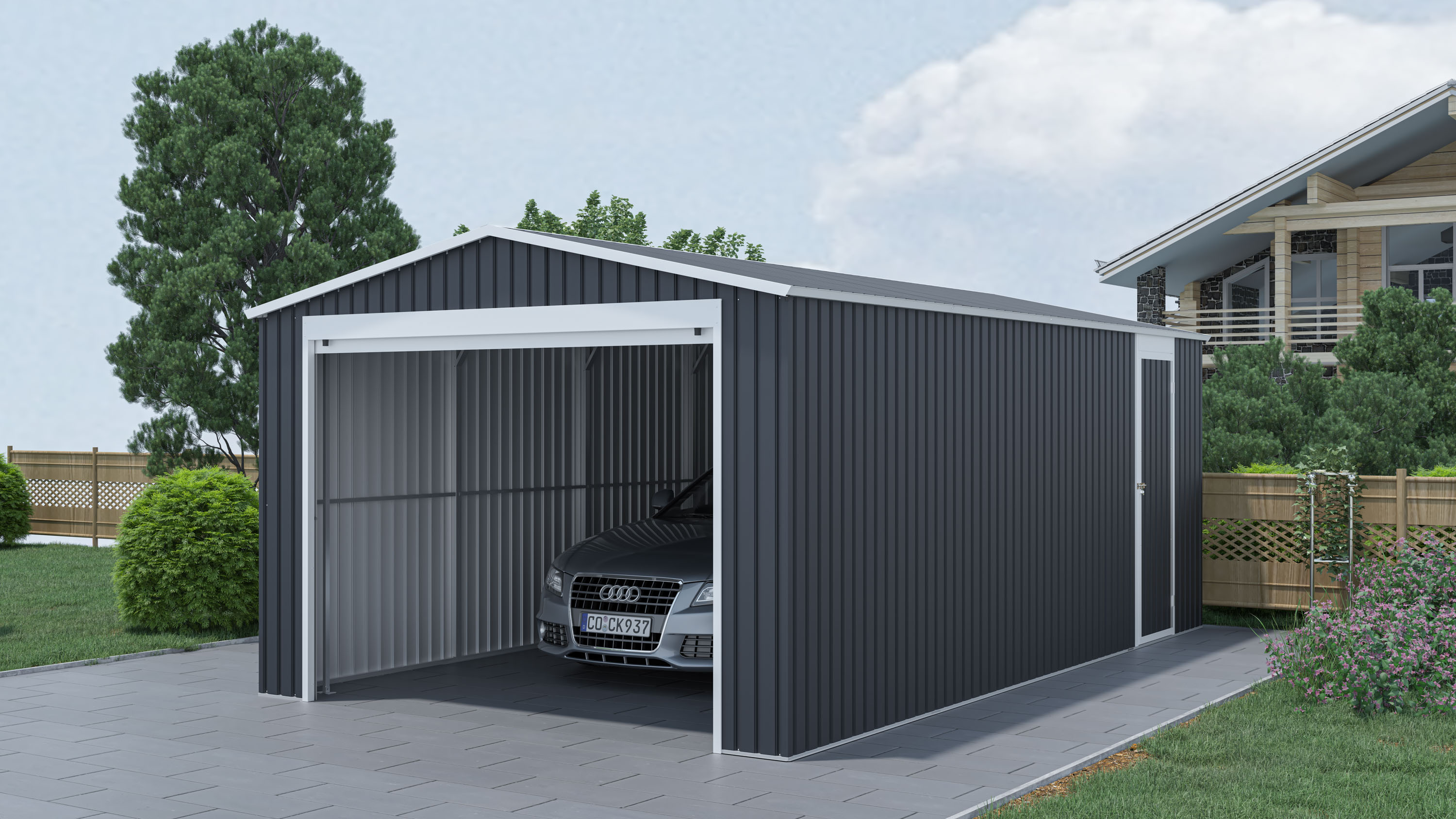 Garáž G21 má stabilní ocelovou pozinkovanou konstrukci. Stěny a střecha jsou z kvalitního plechu, chráněného ještě pozinkem a práškovým nástřikem.