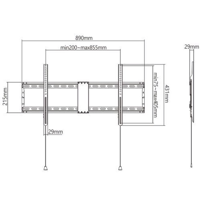 Vesa compatible: 200x200, 300x200, 400x200, 300x300, 400x300,