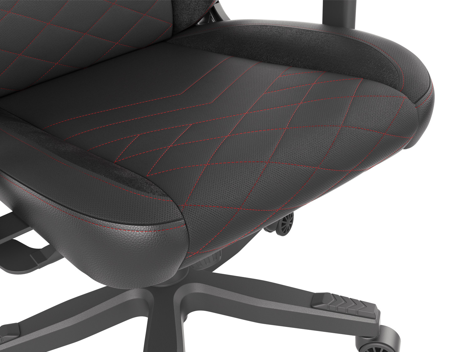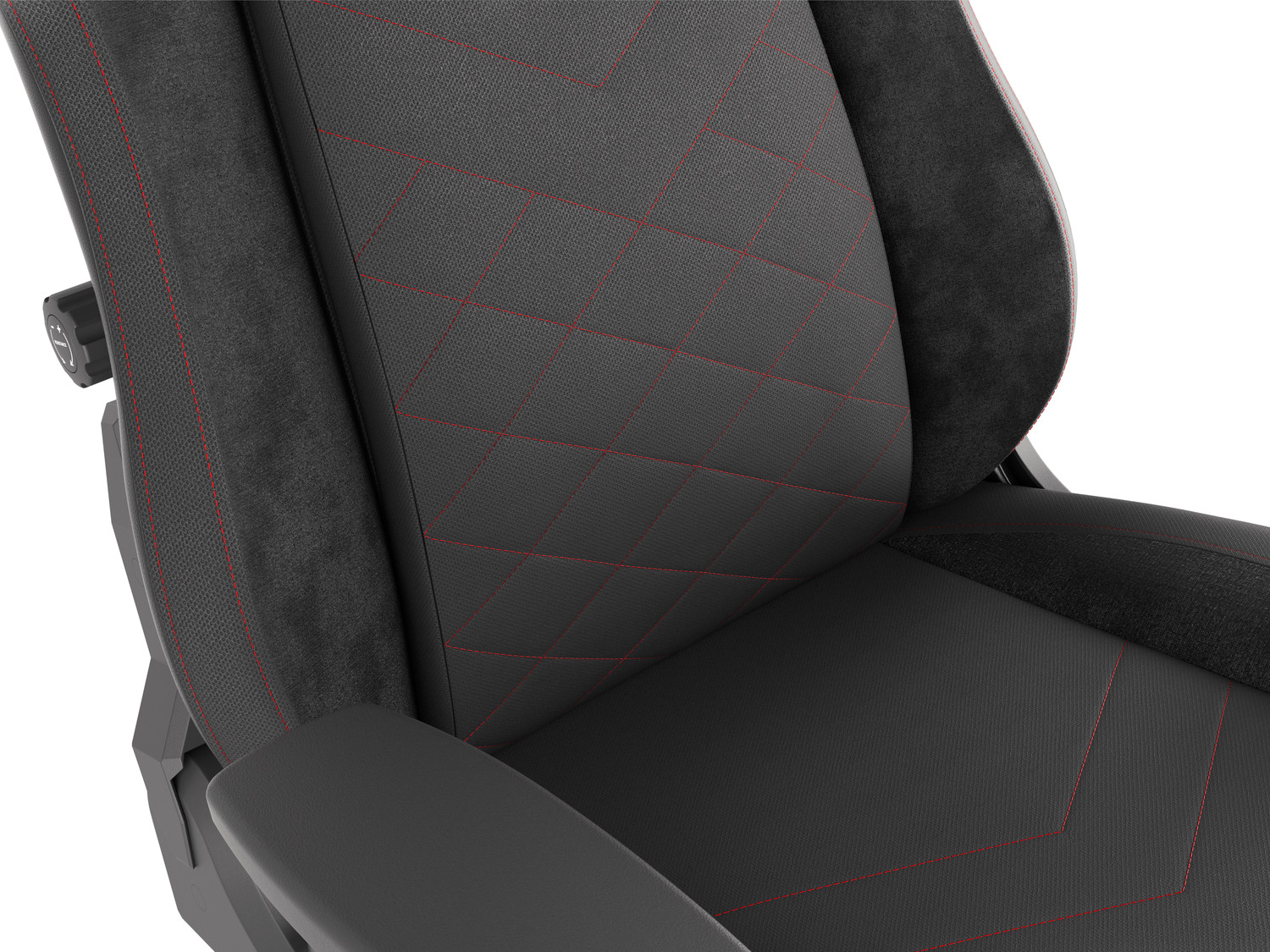 - Rozšířený povrch sedáku a větší opěradlo se sofistikovaným červeným prošíváním a ozdobami v černé měkké látce