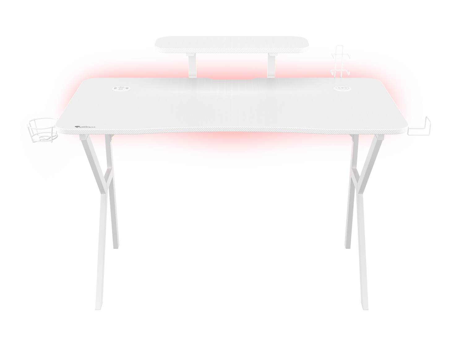 Genesis herní stůl Holm 320, RGB podsvícení, bílý, 120x60cm, 3xUSB 3.0, bezdrátová nabíječka