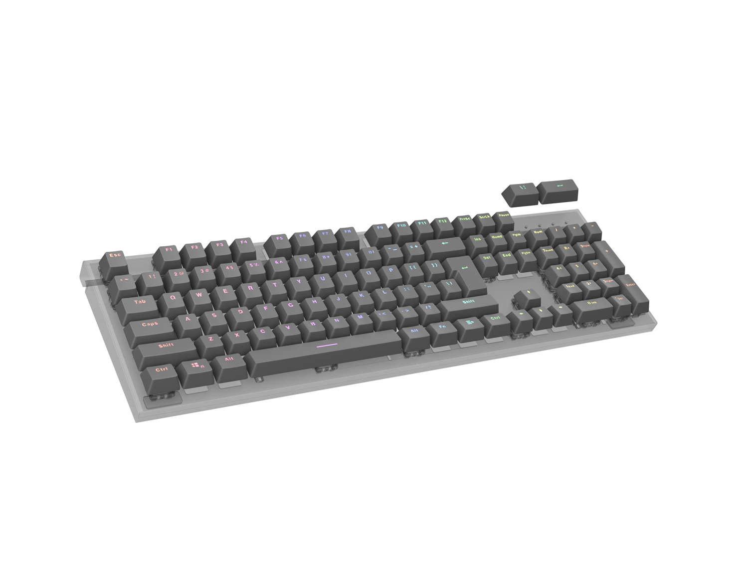 Každá klávesa je vyrobena technikou "double-shot", kdy jsou na