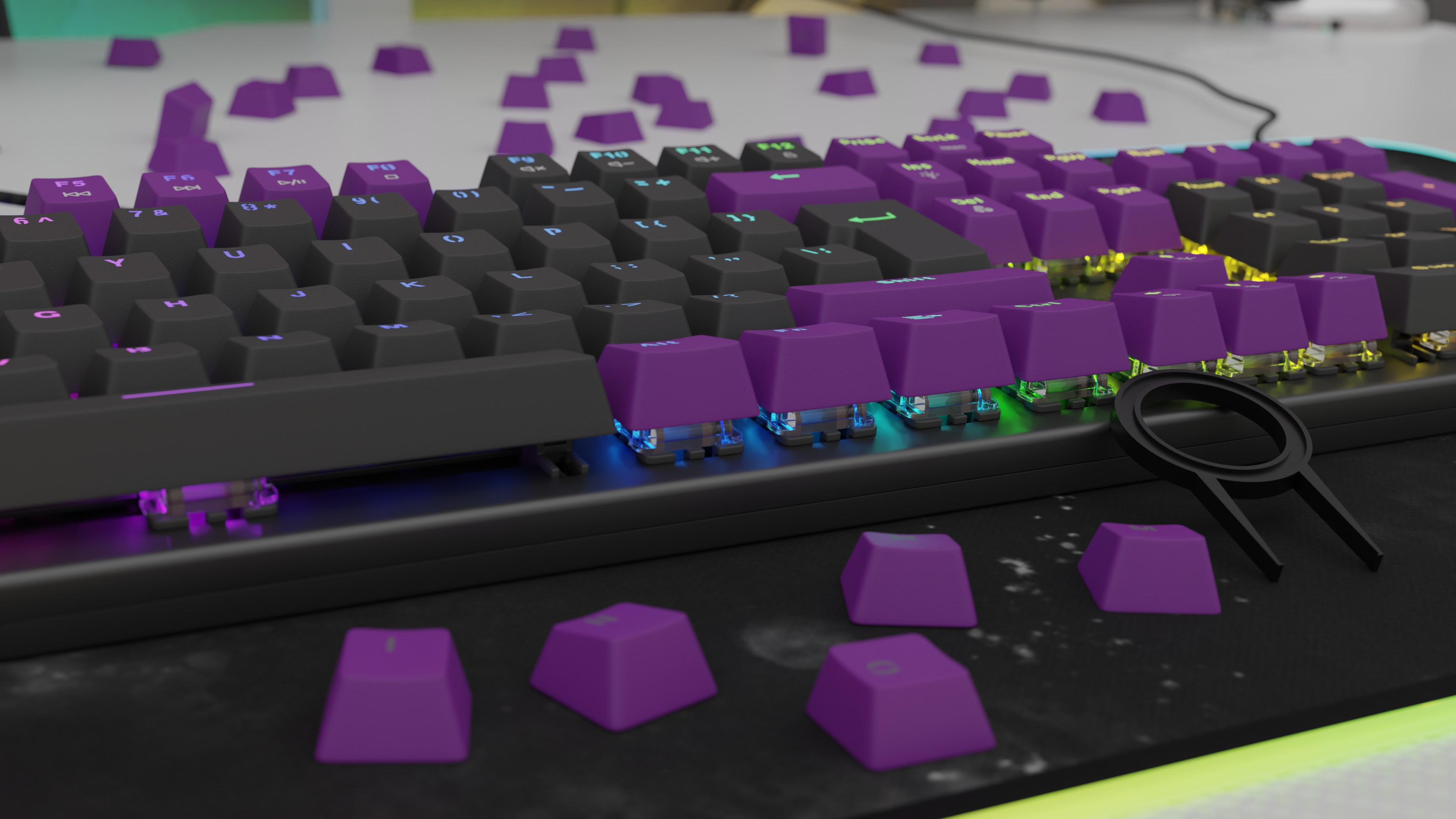 LED umístěných ve spínačích klávesnice, čímž vytvářejí úžasnou