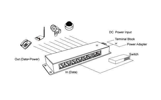 Data In :Connects PC/HUB/Switch