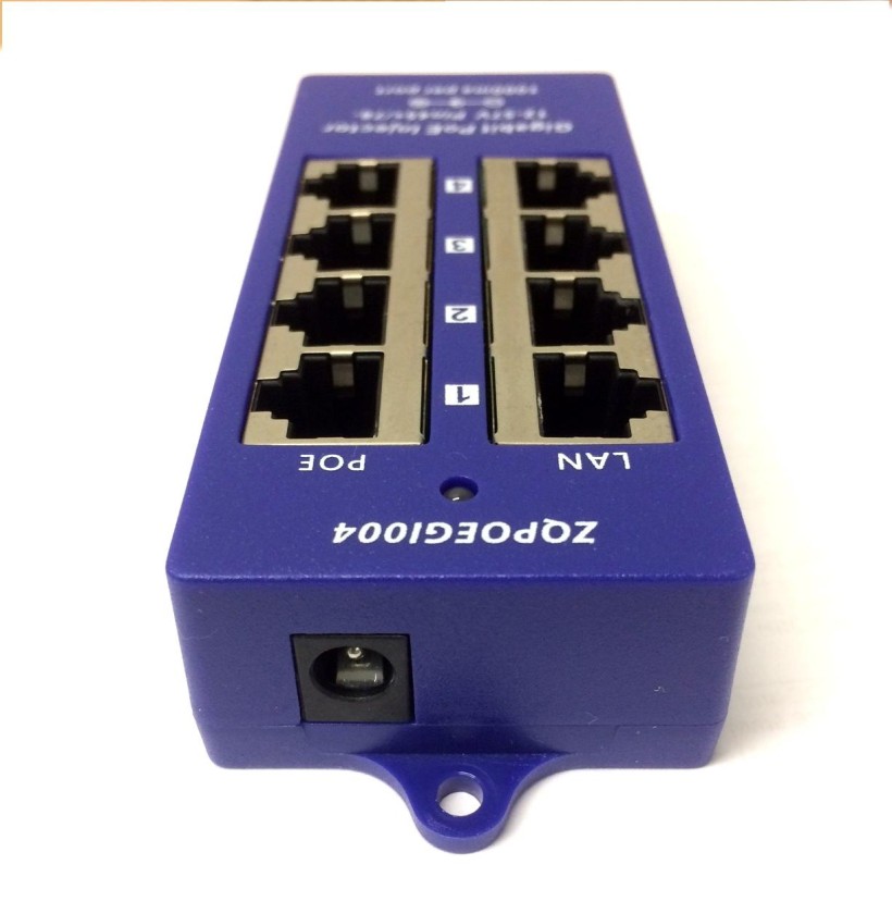 Panel integrující čtyři gigabitové pasivní POE injektory s