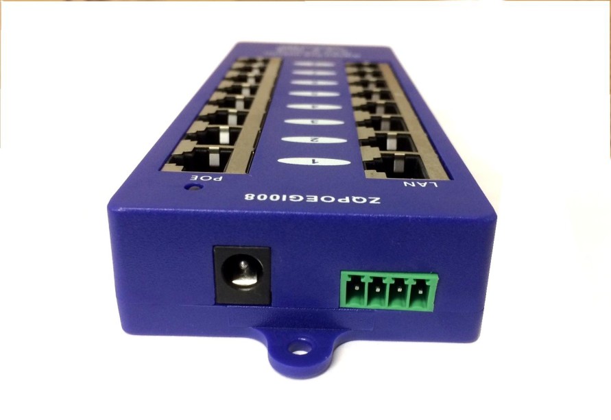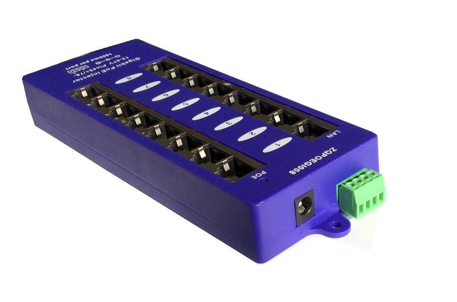 Panel integrující osm gigabitových pasivních POE injektorů s