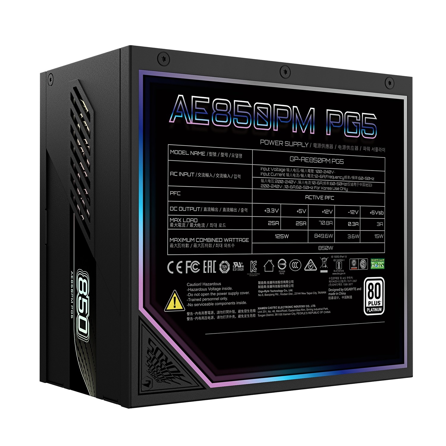 GIGABYTE AORUS ELITE P850W/ 850W/ ATX 3.1/80PLUS Platinum/ Modular/ Retail