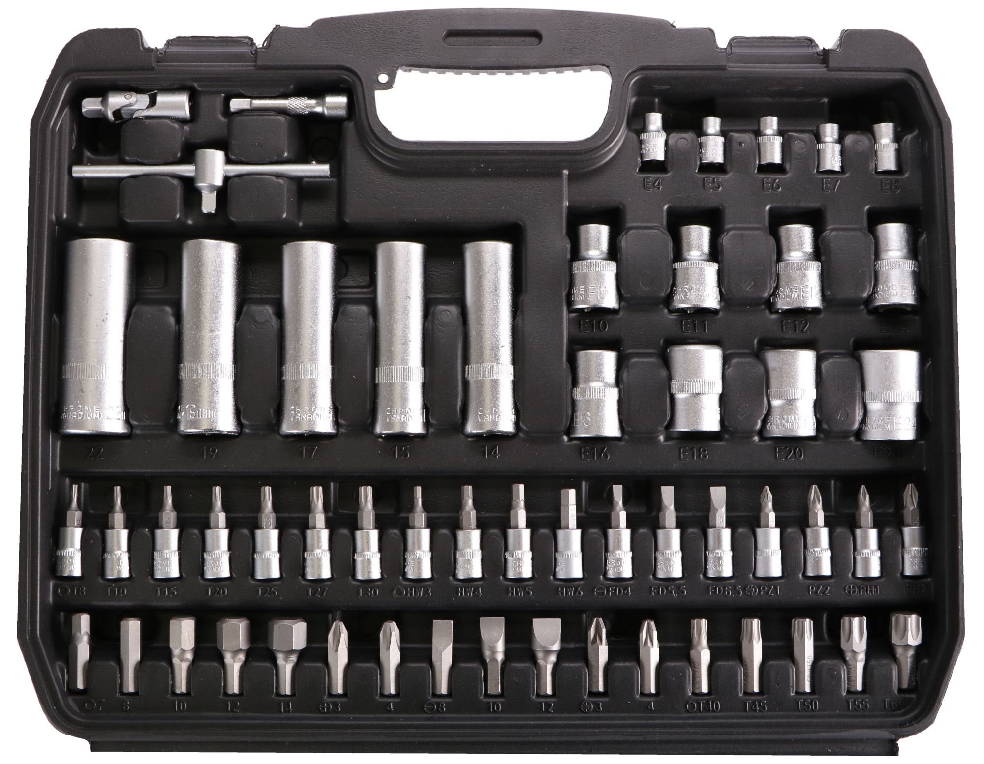 Potřebujete něco opravit nebo namontovat? Pořiďte si kompletní gola sadu Sixtol TOOL SET s celkem 108 díly hlavic a bitů s ráčnami a buďte připraveni na jakoukoliv kutilskou činnost, která nastane. Jednotlivé díly najdete v odolném plastovém kufru, který se vám bude snadno přenášet a skladovat. Sada se hodí do každé dílny a garáže. Budete mít po ruce celou řadu nástrčných hlavic, zástrčných klíčů, bitů, dvě ráčny, univerzální šroubovací rukojeť a mnoho dalšího.