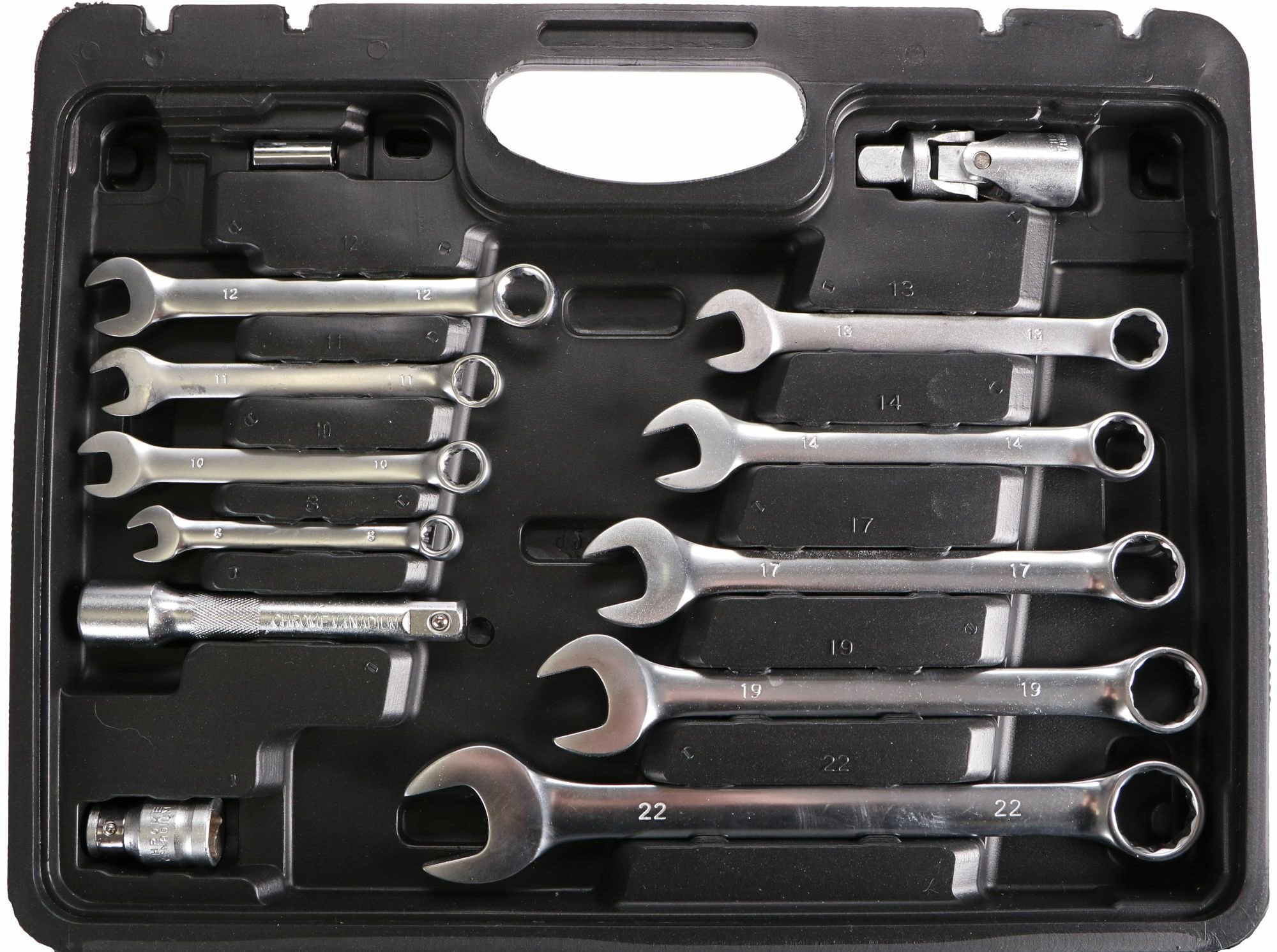 - 9x Kombinovaný klíč 8,10,11,12,13,14,17,19,22 mm