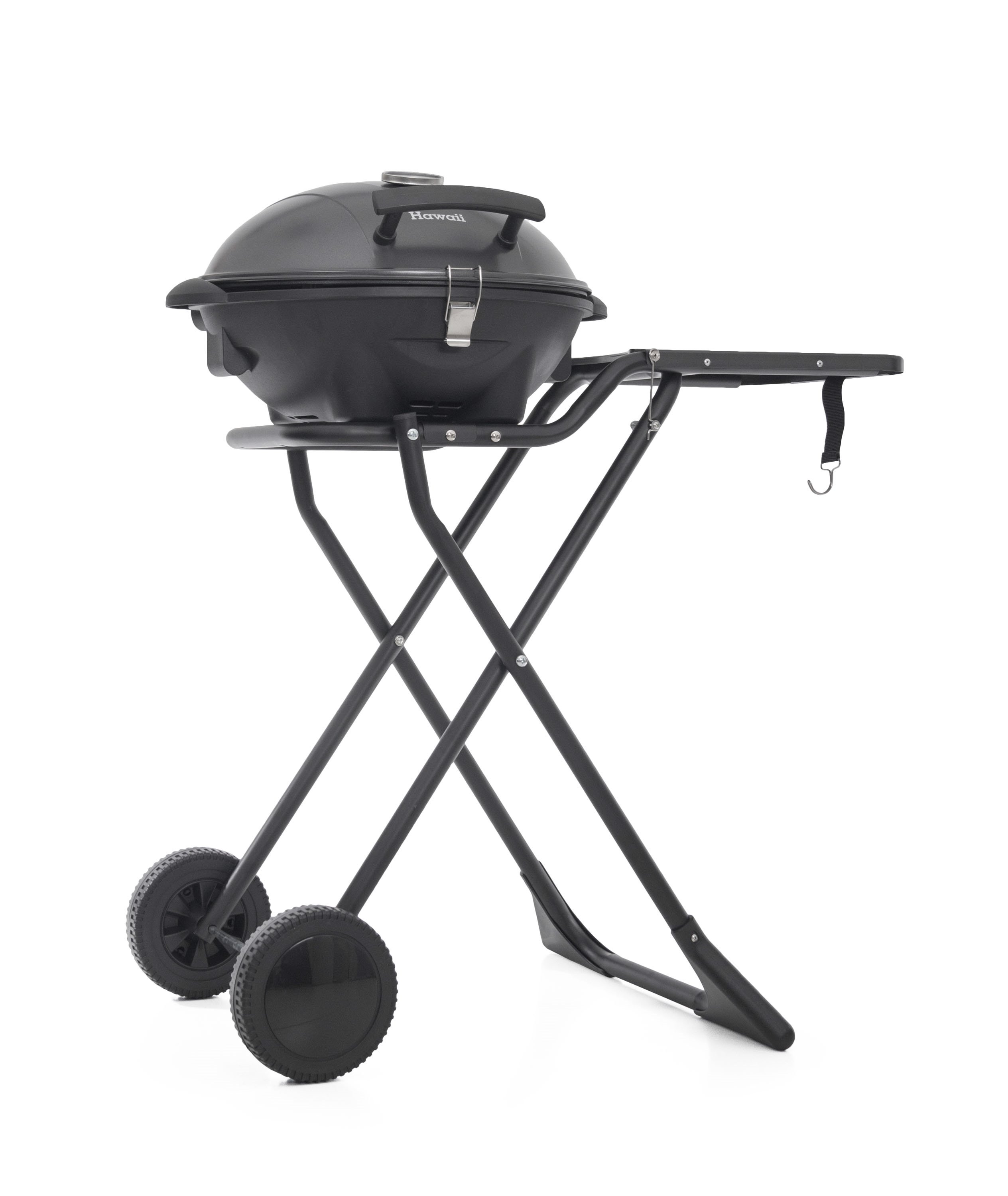 Elektrický gril G21 Hawaii s rozkládacím stolem a výkonem 2,4 kW má termostat a nastavíte na něm teplotu v rozpětí 100 °C–220 °C. Přenosný gril s velkou grilovací plochou a víkem má také chytře řešený stůl s odkládácím místem a pojezdem. Po grilování můžete podstavec pod gril snadno složit a celý gril tak pohodlně a bez námahy přesunete.
