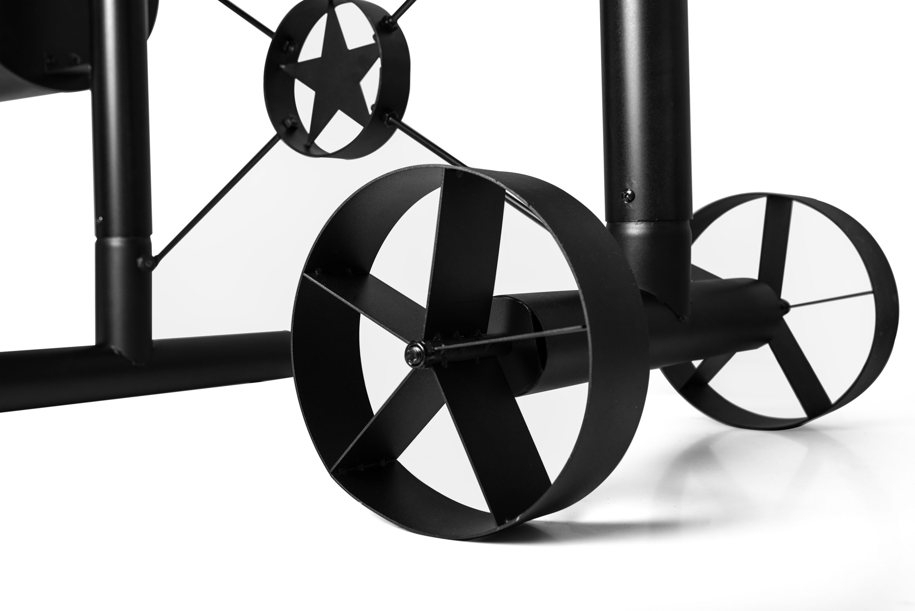 Masivní zahradní gril s udírnou je v bytelném provedení a potěší jak milovníky klasiky, tak i příznivce typicky „chlapských” řešení. Patří do skupiny grilů, kterým se díky jejich tvaru přezdívá „lokomotiva”. Je ideální pro grilování, uzení, pečení, pomalé vaření, ale i udržování teploty. Kolečka pro snadnou manipulaci zajistí, že gril snadno a rychle posunete bez zbytečné námahy, kam budete potřebovat. Gril má v přední části prostornou odkládací polici, kterou využijte například pro odložení grilovacího nářadí.