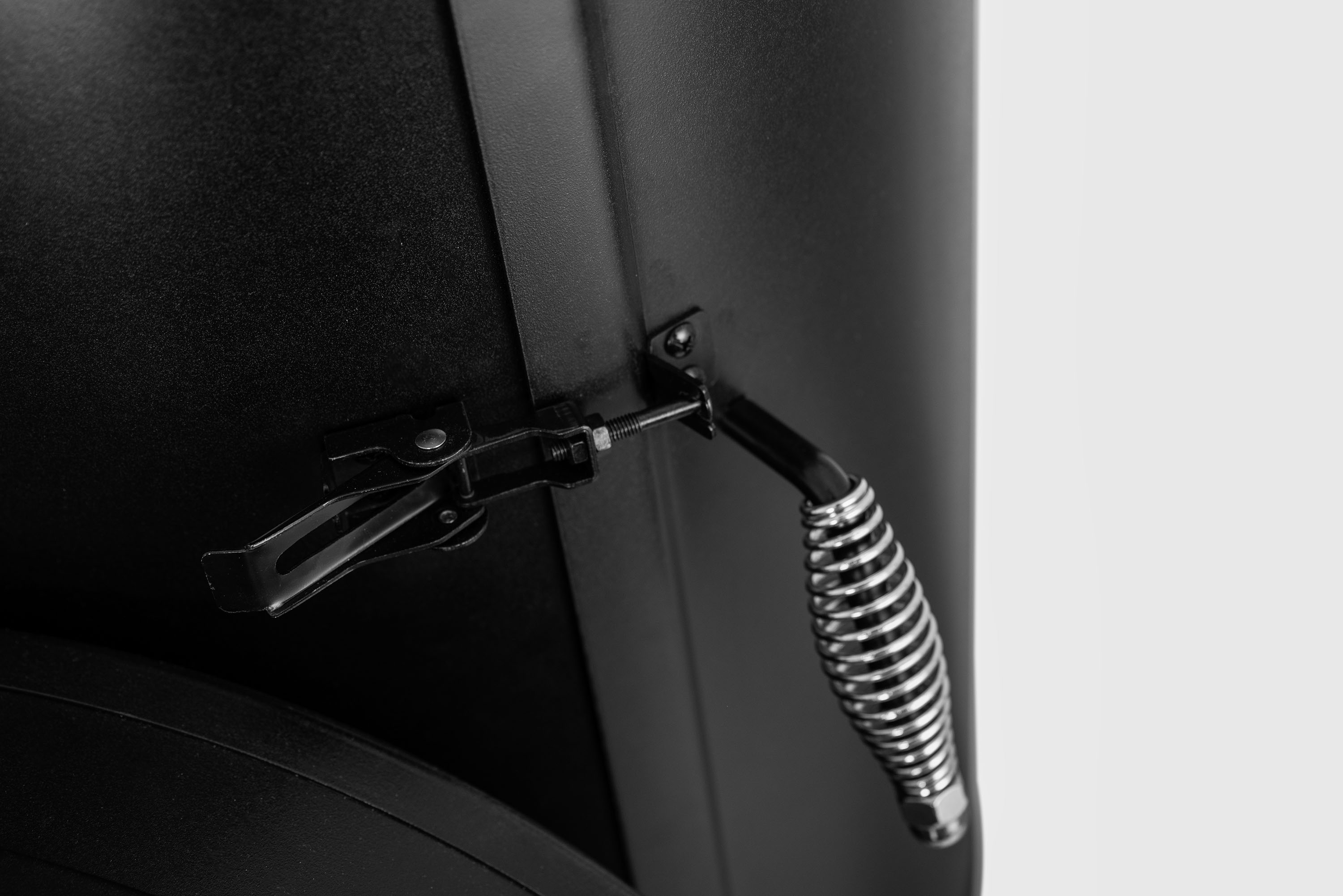 Udírna je vybavena 9 háčky a 4 nerezovými rošty, v čelní straně jsou prostorná dvířka z 2,5mm zesíleného plechu pro snadný přístup k uzeninám. Na zadní straně udírny jsou malá dvířka, kterými můžete pohodlně doplňovat vodu v misce na vodu bez toho, že by došlo k prudkému snížení teploty v udírně otevřením velkých hlavních dvířek. Pod udírnou najdete ještě praktickou misku na odkapávající tuk.