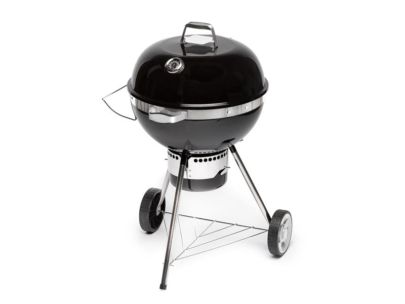 Gril na dřevěné uhlí Technické parametry: Velikost grilovací nádoby: ø 57 cm Grilovací plocha: ø 50,5 cm Grilovací výška: 3 možností nastavení: 74; 75,5 nebo 77 cm Grilovací rošt: litina; chrom Pochromový rošt s vnitřním mini kruhem z litiny o průměru 29 cm Teploměr Kryt s madlem Gumová kolečka pro lepší manipulaci 2 odnímatelné rukojeti pro…