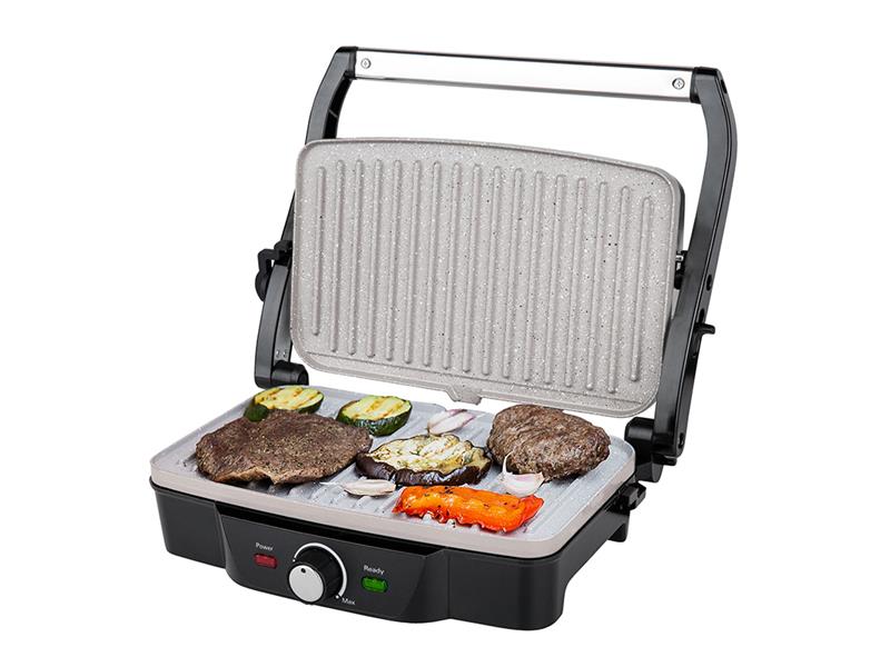 Elektrický gril s příkonem 1600 W. Rohnson R-2112 disponuje grilovacími pláty s mramorovou úpravou, nastavitelnou regulací teploty a ochranou proti přehřátí. Konstrukce grilu umožňuje 3 varianty grilování – přiklopené víkon otevřené víko a rovná poloha 180 °.