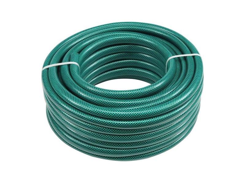 Třívrstvá zahradní hadice z pružného plastu a polyesterovým, příčným opletem. Odolná vůči stárnutí a usazování nečistot. Hadice je pružná i při nízkých teplotách. Technické parametry: Tlak: 15 bar Délka: 30 m Barva: zelená Průměr: 3/4" Pracovní teplota -10 až +60°C