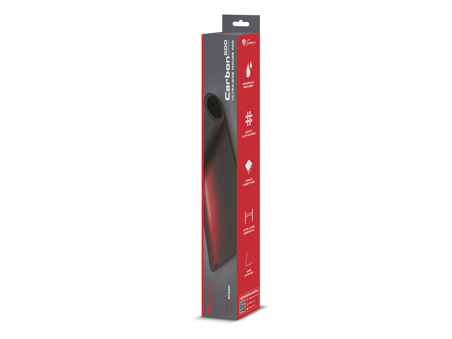Carbon 500 Ultra Blaze je herní podložka pro veškeré vaše herní vybavení. Mimořádně velká velikost vám umožní správně uspořádat vybavení a nikdy vám nedojde místo pro myš. „Rychlostní“ povrch a gumové podlážka dělají podložku dokonalým společníkem, který ochrání váš stůl a poskytne vám pevnou kontrolu nad myší.