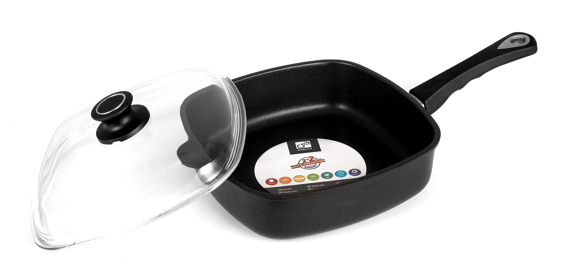 Skleněná poklice pánve G21 Pool je z tvrzeného a odolného skla s úchytem pro snadné držení bez obav z popálení. Víko pánve má pod rukojetí důmyslně řešený otvor pro odvod horké páry. Velkou předností pánve Pool s víkem je jejich odolnost – jak pánev, tak víko, můžete vložit do trouby a péct či zapékat nebo dusit pokrmy až do teploty 240 °C.