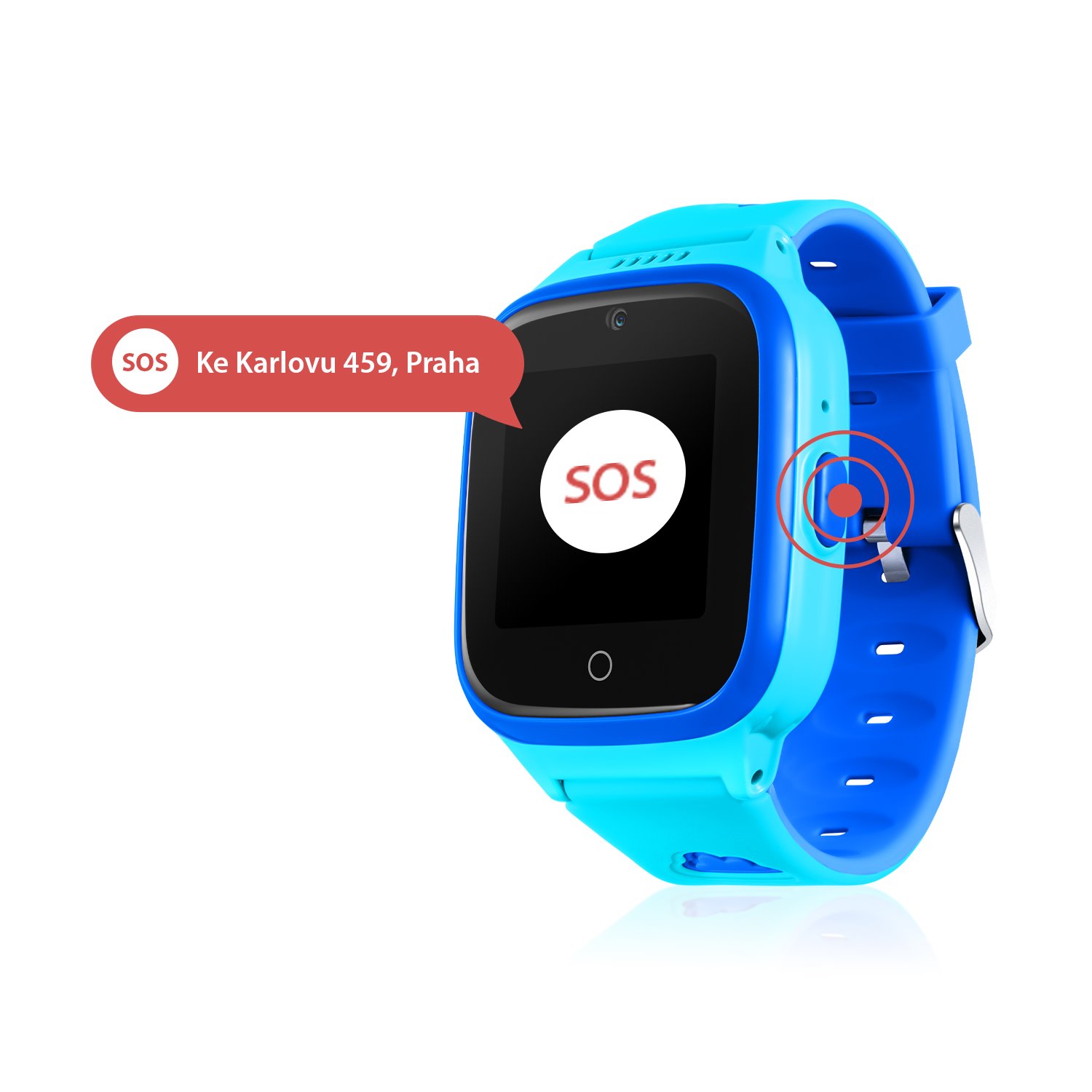 Pokud se dítě ocitne v úzkých, pomůže tlačítko SOS. Jednoduchým stisknutím tlačítka hodinky odešlou upozornění o nouzové situaci. Spolu s ním se nahraje pomocí mikrofonu třicetivteřinový zvukový záznam, který se včetně aktuální polohy zobrazí v aplikaci na vašem telefonu.