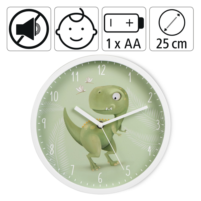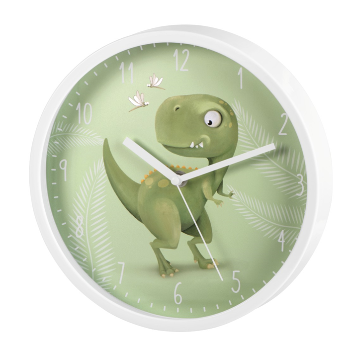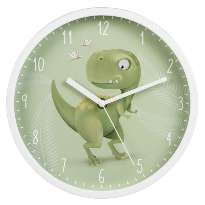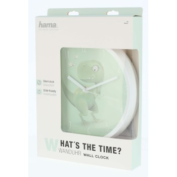 Nástěnné hodiny s malým dinosaurem od značky Hama. Hodiny nabízí analogové zobrazení času, tichý chod bez hlasitého tikání a velký ciferník s arabskými číslicemi. Nechybí ani hodinová a minutová ručička.