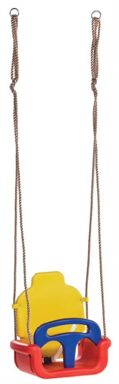 Závěsné houpací sedátko Marimex Play 3v1 s flexibilní konstrukcí roste spolu s vaší ratolestí, kdy houpačku jednoduše přizpůsobíte aktuálnímu věku vašeho dítěte odebráním některých částí, takže se jedná o skvělé řešení pro početnější rodiny. První varianta nastavení je určená pro kluky a holky do 3 let, kdy extra vysoká opěrka zad zajistí vysoký komfort i správné držení těla a přední hrazda s bezpečnostním pásem zase zabraní vyklouznutí a následnému pádu dítěte ze sedačky. Odebráním opěrky zad přizpůsobíte sedačku dětem od 3 let, které pak spolehlivě jistí přední hrazda a bezpečnostní pás. Poté, co odejmete přední hrazdu, tak houpací sedátko mohou používat kluci a holky do 12 let.