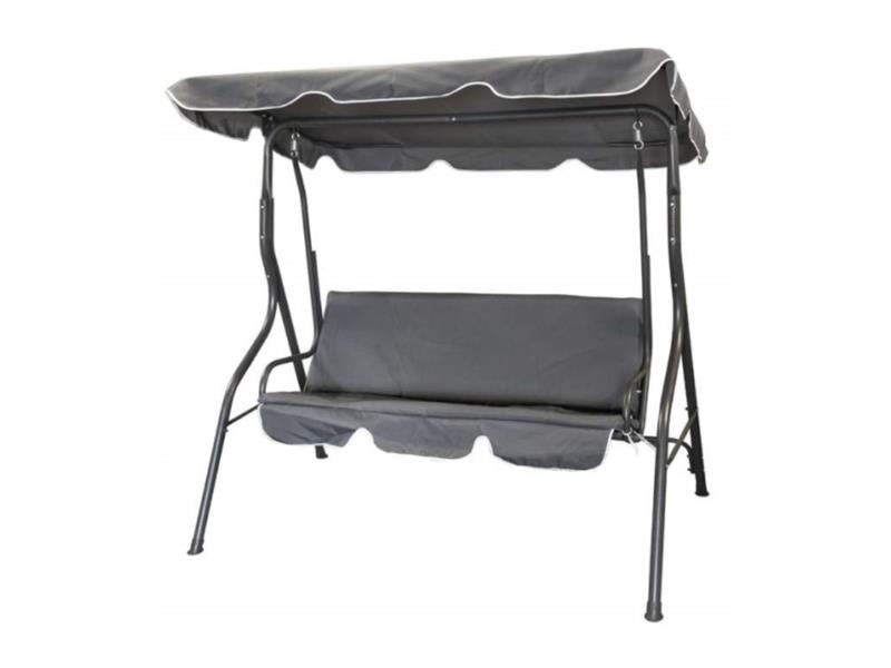 Zahradní houpačka PANAMA pro 3 osoby, vhodná na vaší zahradu či terasu, má kovovou konstrukci ošetřenou práškovým lakováním v antracitové barvě a šedý sedák z polyesteru. Před sluncem vás ochrání stříška.