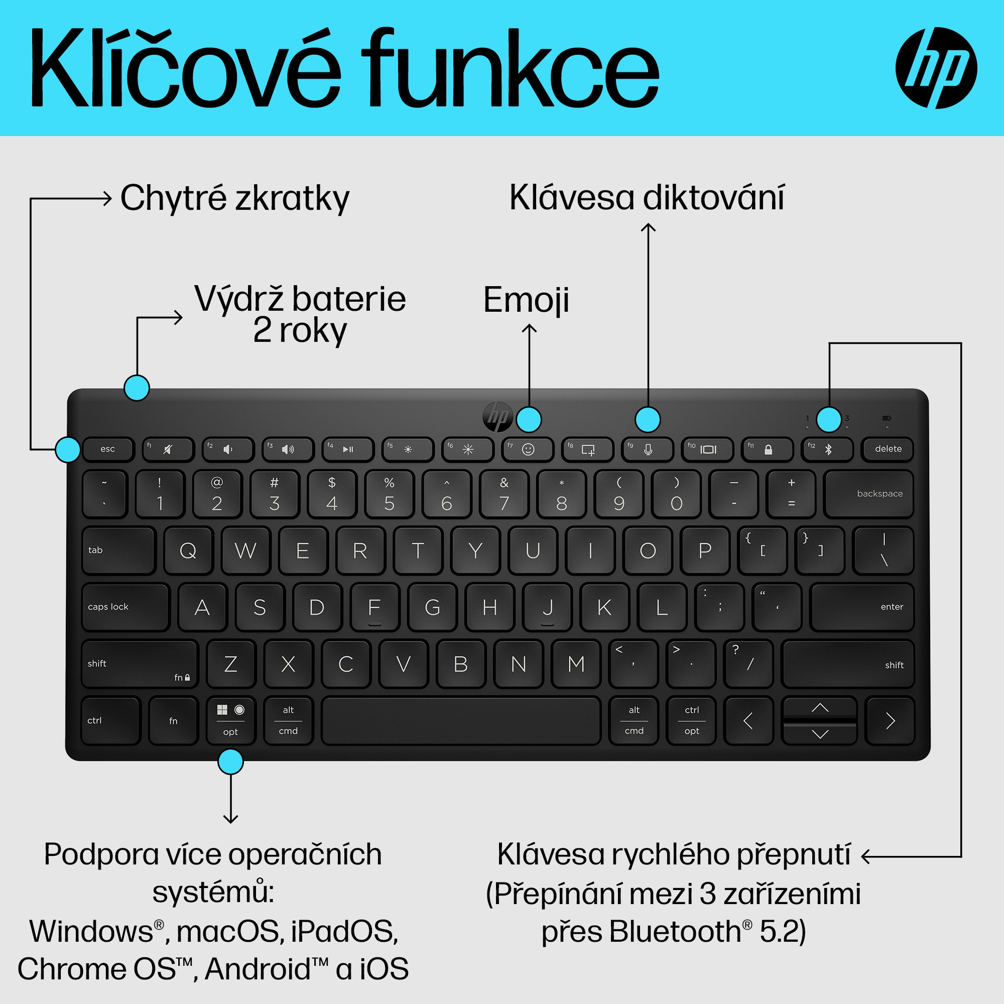 HP 355 Compact Multi-Device Keyboard #BCM - Ceska