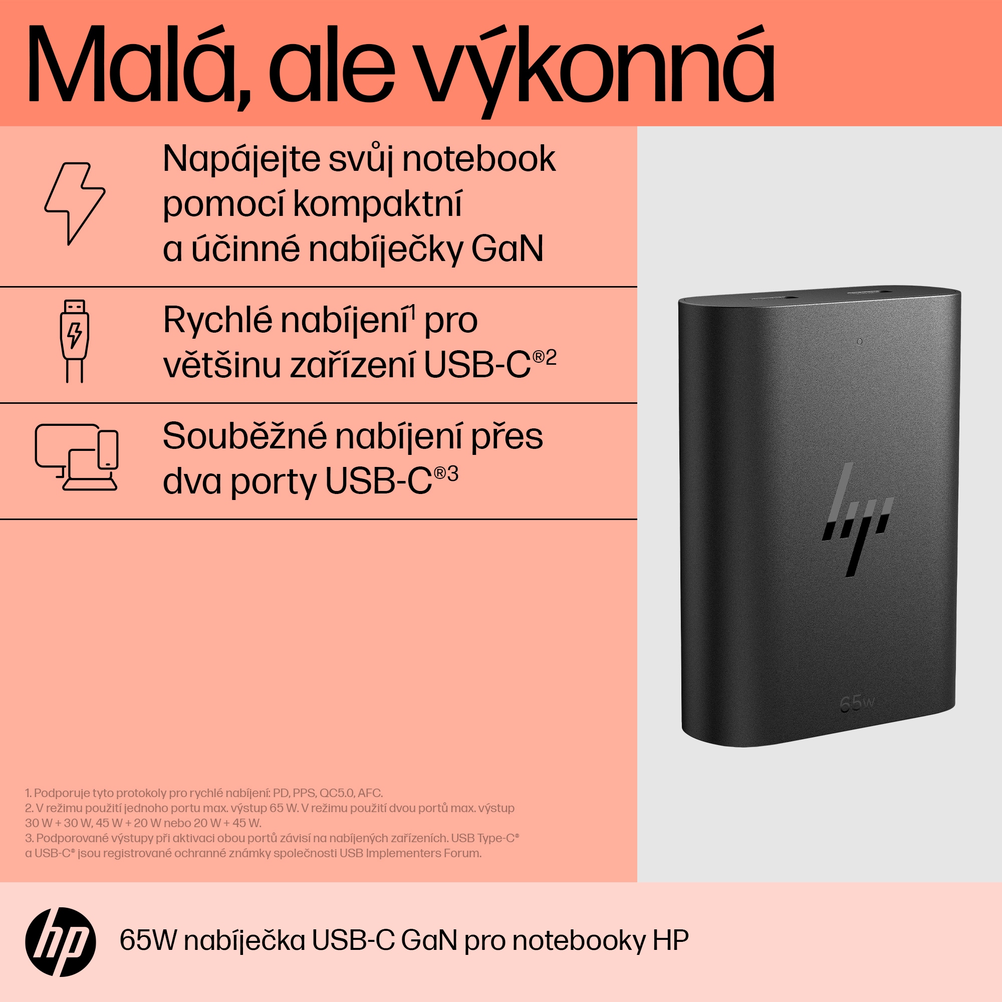 What´s in the box HP USB-C 65W GaN Laptop Charger, Power cord,
