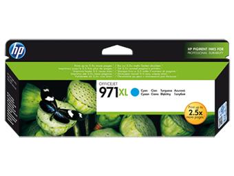 Azurová inkoustová kazeta HP 971XL, výtěžnost 6600 stránek při 5% pokrytí. Kompatibilita s HP Officejet Pro X451/X551dw, Officejet Pro X476/X576dw.