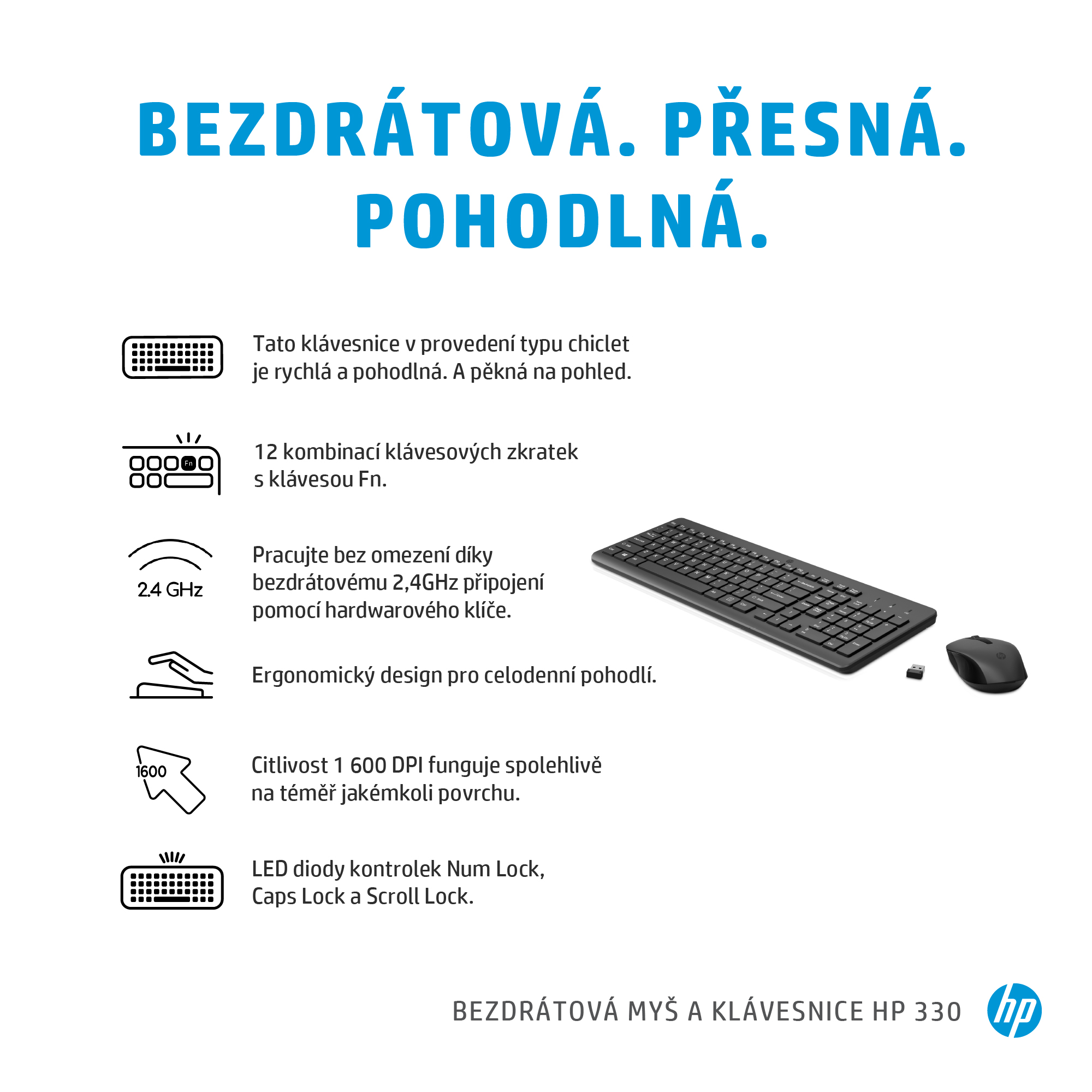 Atlon.cz Počítače a kancelář Klávesnice a myši Set klávesnice s myší HP Bezdrátová klávesnice a myš HP 330