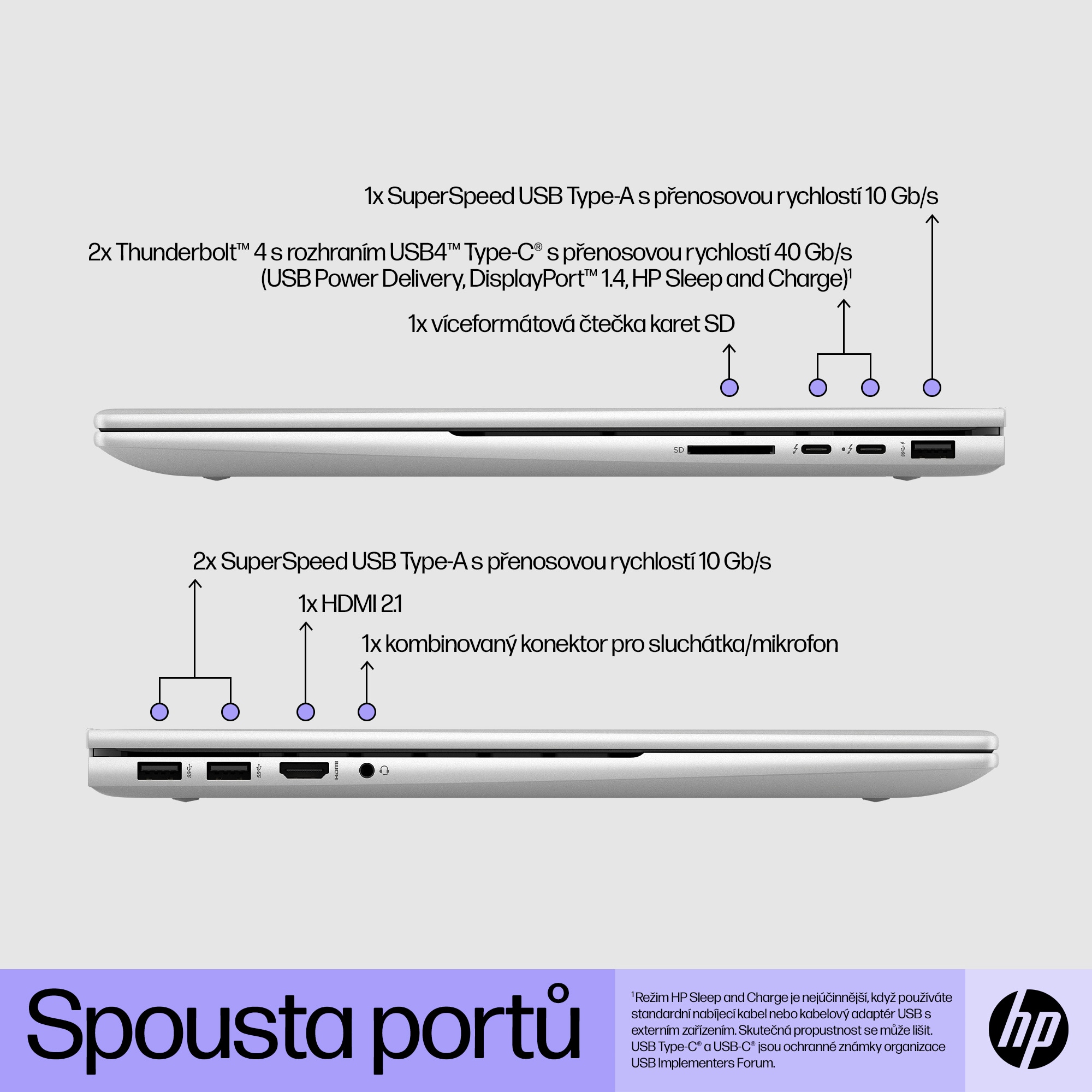 signálu 40 Gb/s (USB Power Delivery, DisplayPort™ 1.4, HP Sleep and
