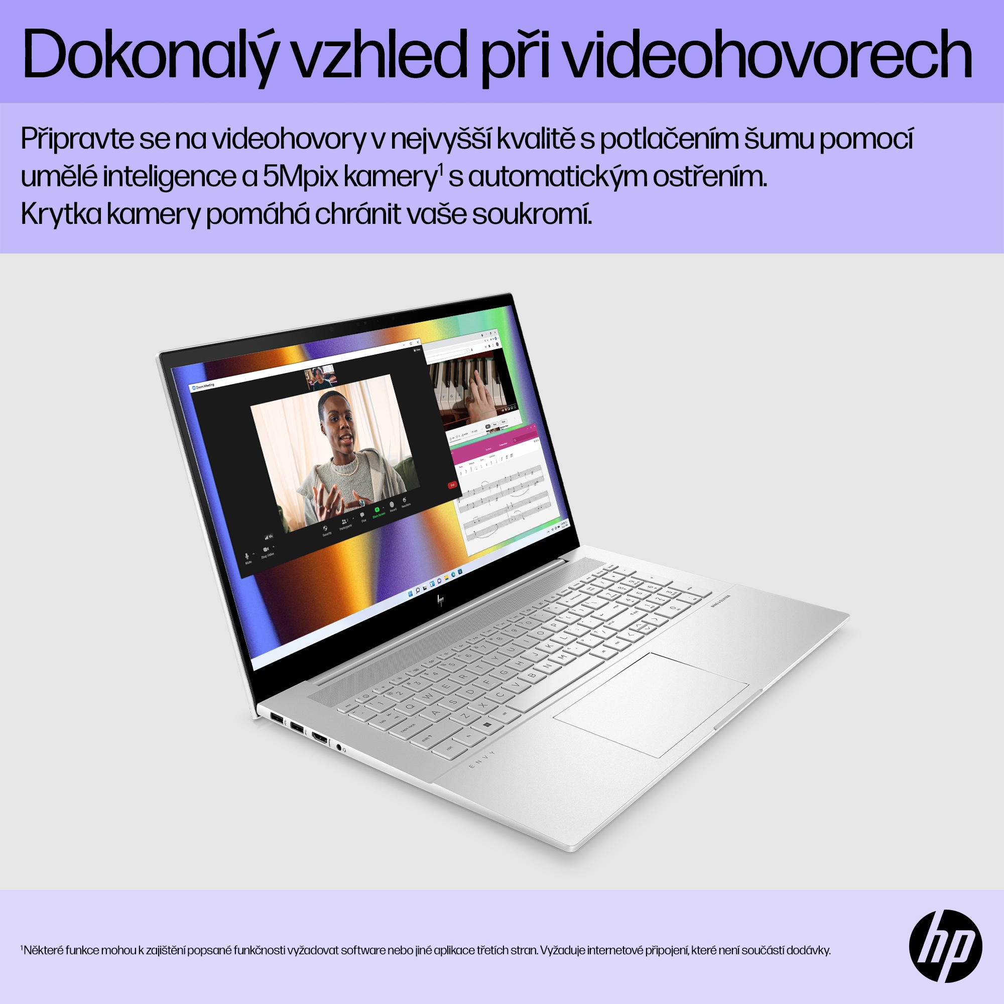 Web kamera:5Mpx infračervená kamera HP True Vision se snížením přechodného