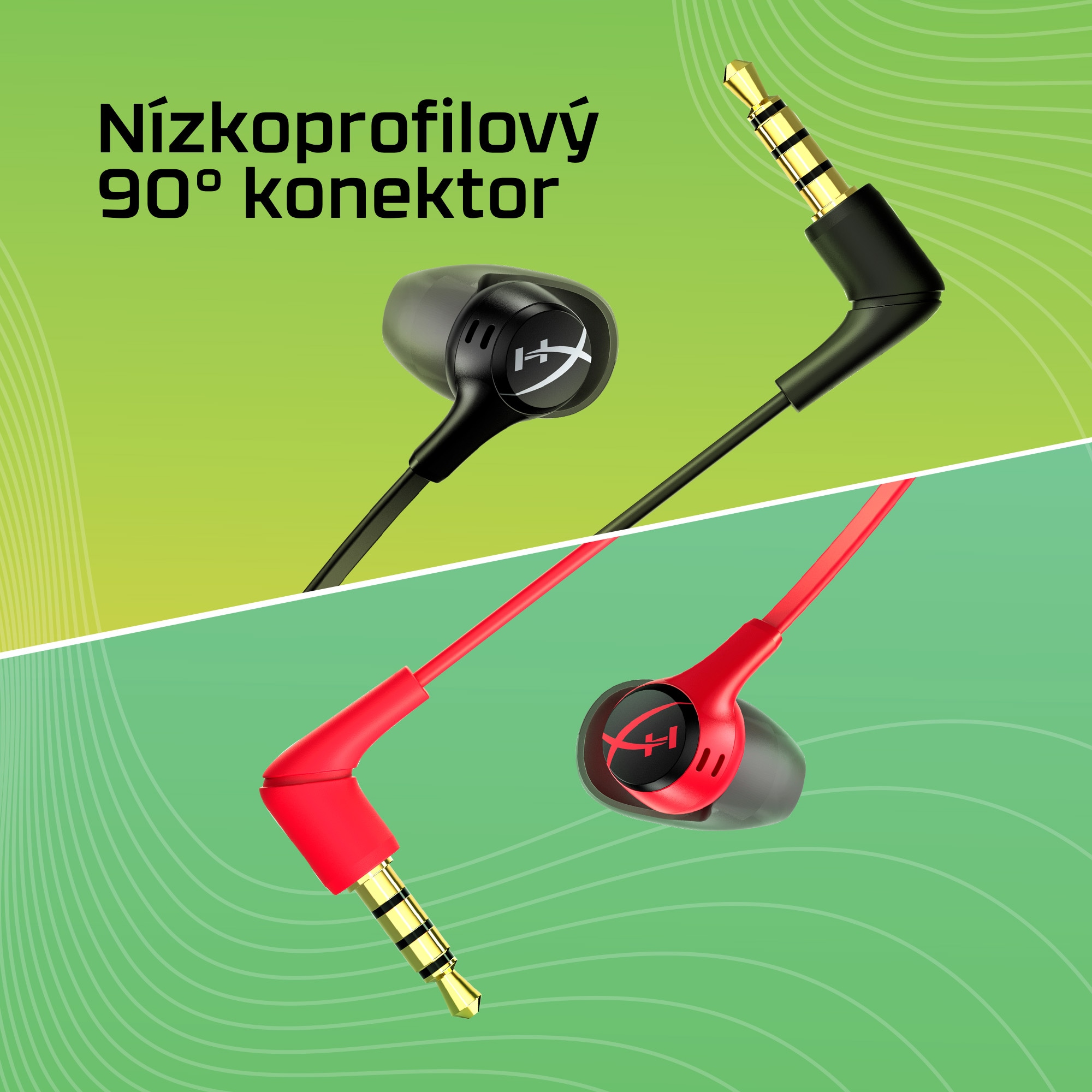 Cloud Earbuds II s plochým a zahnutým nízkoprofilovým konektorem,