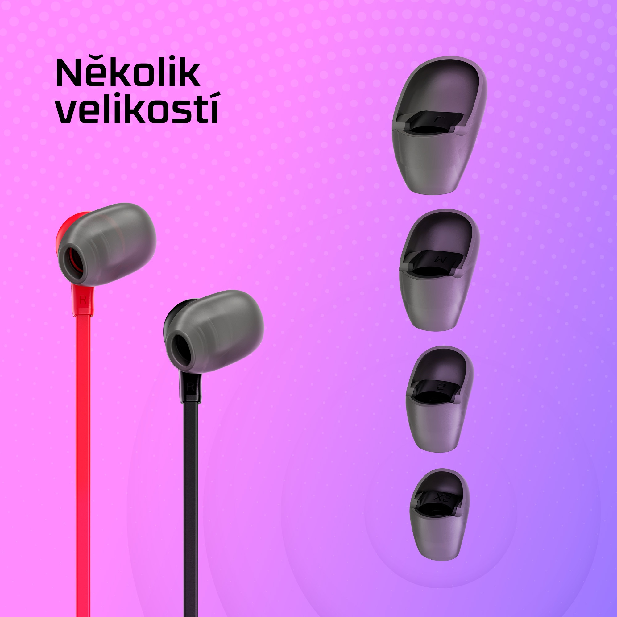 Díky 4 velikostem přepracovaných koncovek do uší, od velkých až po