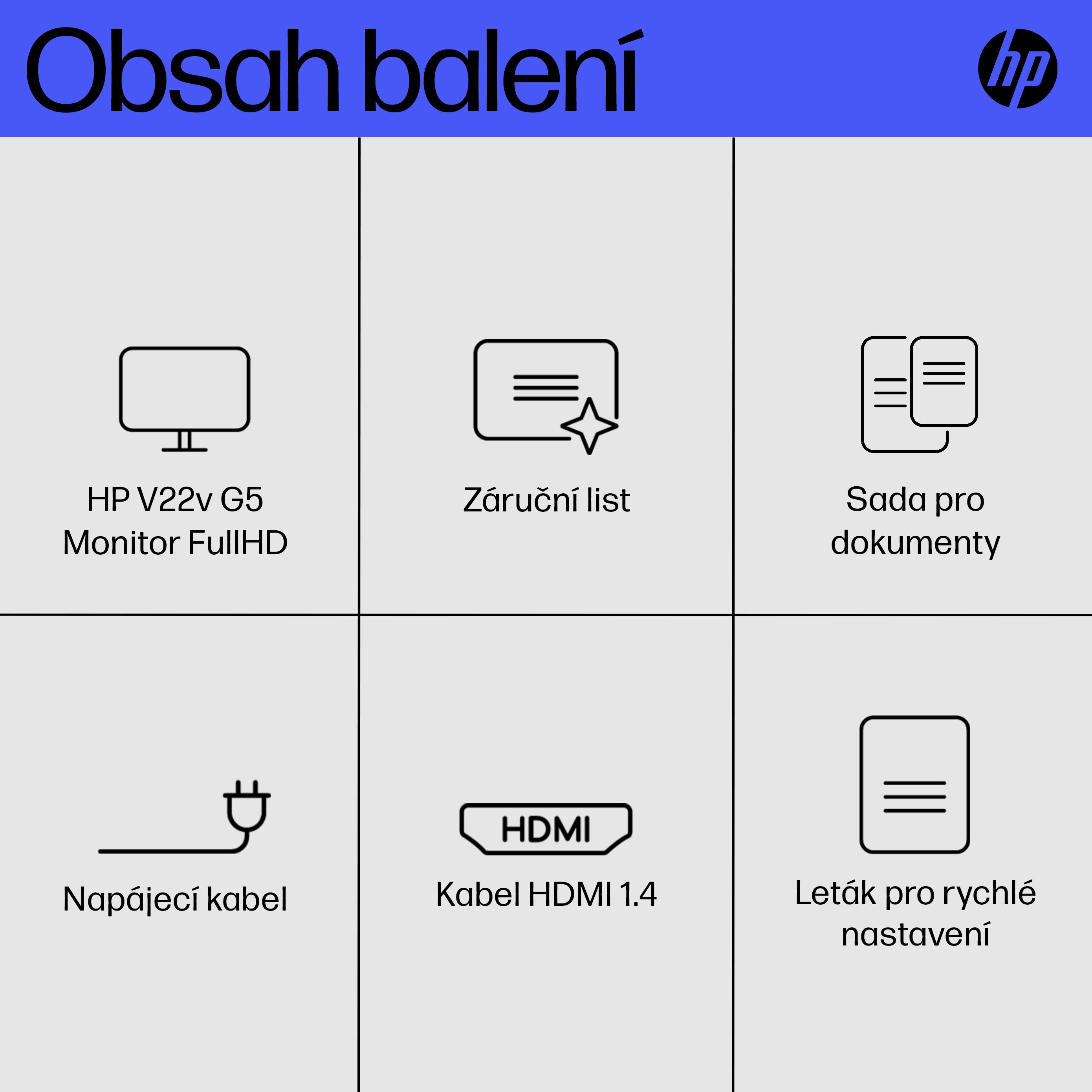 HP LCD V22v G5 FHD 21,45"/ 1920x1080 VA FHD AG/ 16:9/3000:1/200cd/ 5ms/ 1xVGA/ 1xHDMI/ VESA/ Black